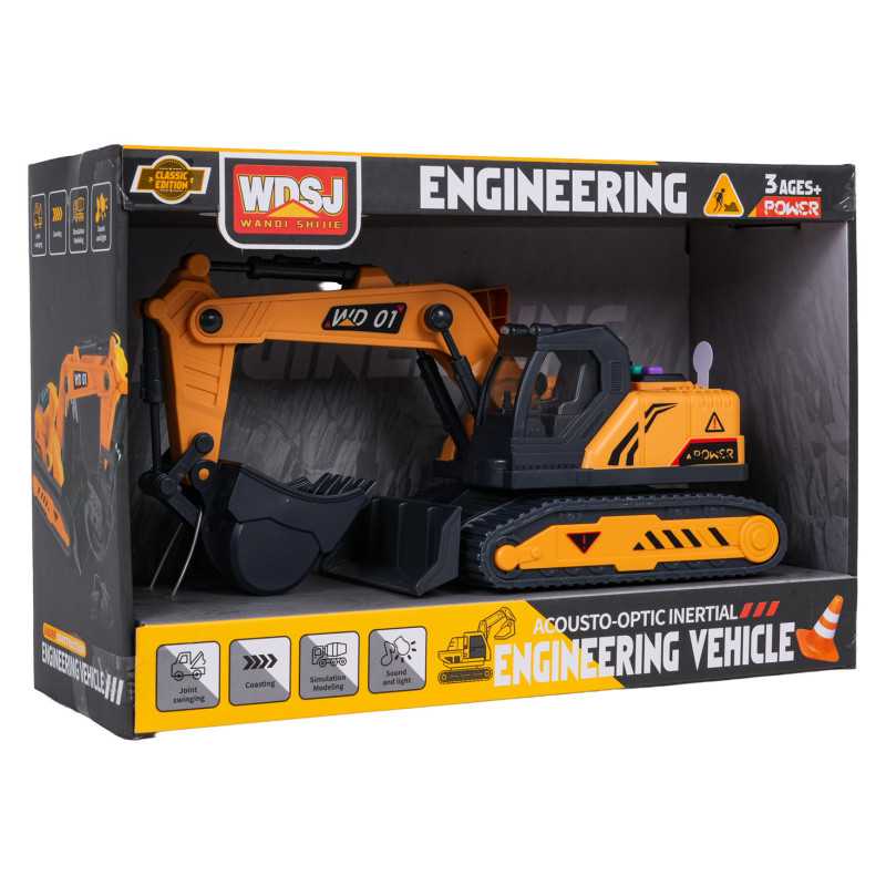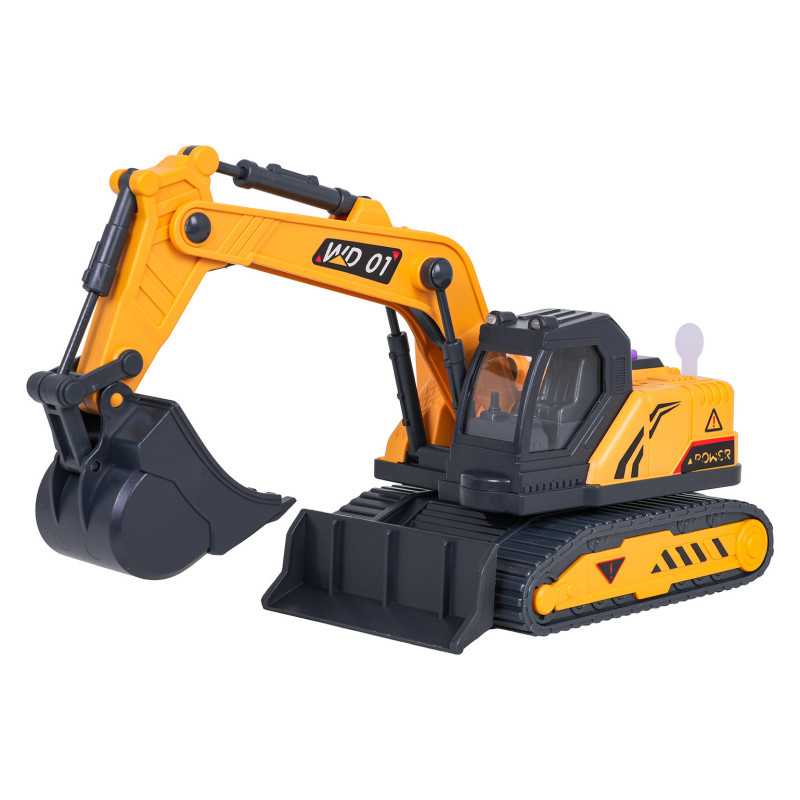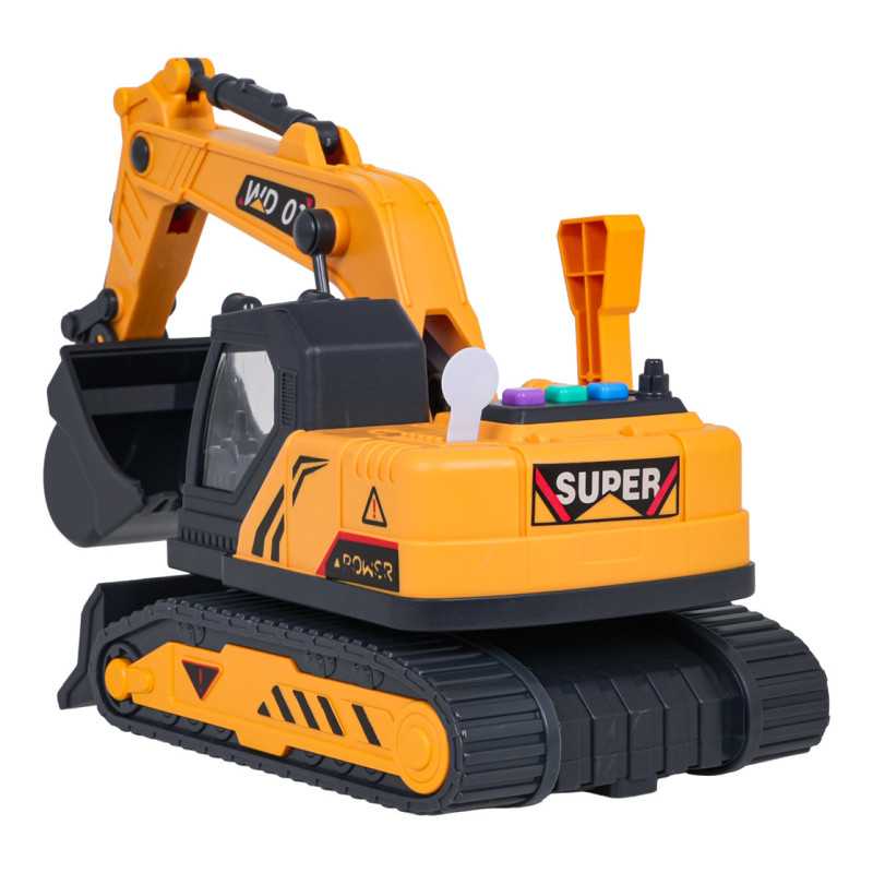 Interaktyvus ekskavatorius su garso ir šviesos funkcijomis bei judančiomis dalimis, skirtas vaikams nuo trejų metų amžiaus. Ekskavatorius pagamintas 1:18 masteliu iš aukščiausios kokybės medžiagų ir su dėmesiu detalėms. Žaislas turi judančias dalis, tokias kaip kaušas ir pagrindas. Mygtukų skydelis ant statybinės mašinos stogo aktyvuoja garso ir šviesos efektus. Žaislas maitinamas 3 x AG13 baterijomis (pridedamos).