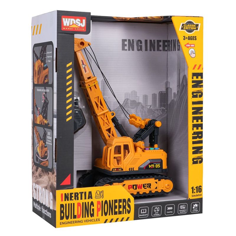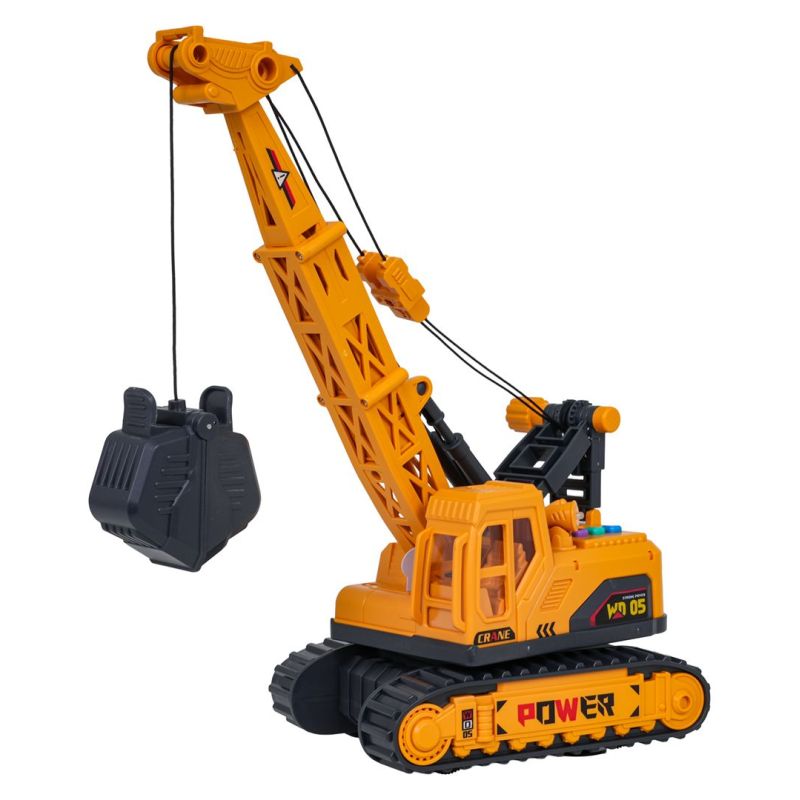 Interaktyvus vikšrinis kranas, pagamintas 1:16 masteliu, su judančiomis dalimis, skirtas vaikams nuo trejų metų amžiaus. Žaislas sukurtas iš aukščiausios kokybės medžiagų, skiriant ypatingą dėmesį detalėms. Krano strėlė valdoma rankiniu būdu, o griebtuvą galima nuleisti ir pakelti kroviniams kelti. Mašinos pagrindas sukasi 360 laipsnių kampu. Ant stogo esantys mygtukai aktyvuoja garso ir šviesos efektus. Krano apačioje įrengti nedideli varomieji ratukai. Žaislas maitinamas 3 x AG13 baterijomis (pridedamos).