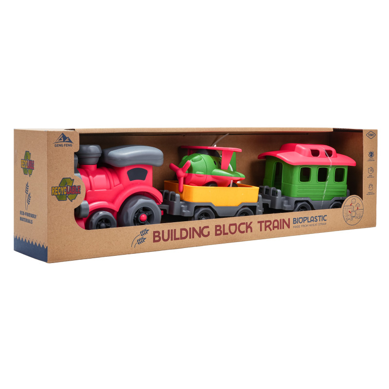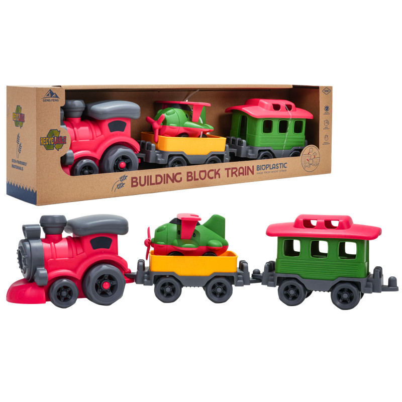 Šis traukinio ir vagonėlių rinkinys, pagamintas iš bioplasto , puikiai tinka vaikams nuo aštuoniolikos mėnesių amžiaus. Šis žaislas puikiai tinka mažyliams, pagamintas iš ekologiškų medžiagų, neturi aštrių briaunų ir yra atsparus intensyviam naudojimui. Jo ryškios spalvos traukia vaikų dėmesį ir skatina žaisti.