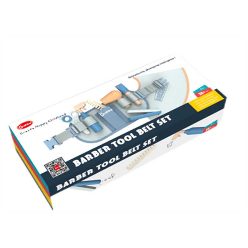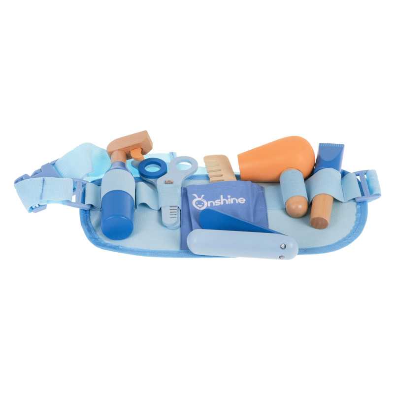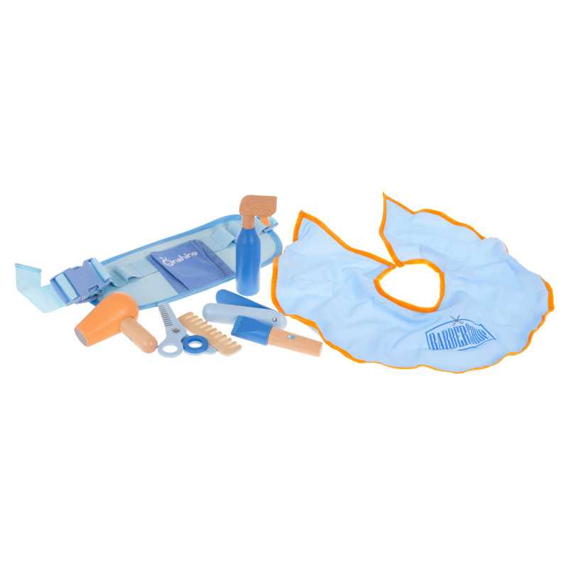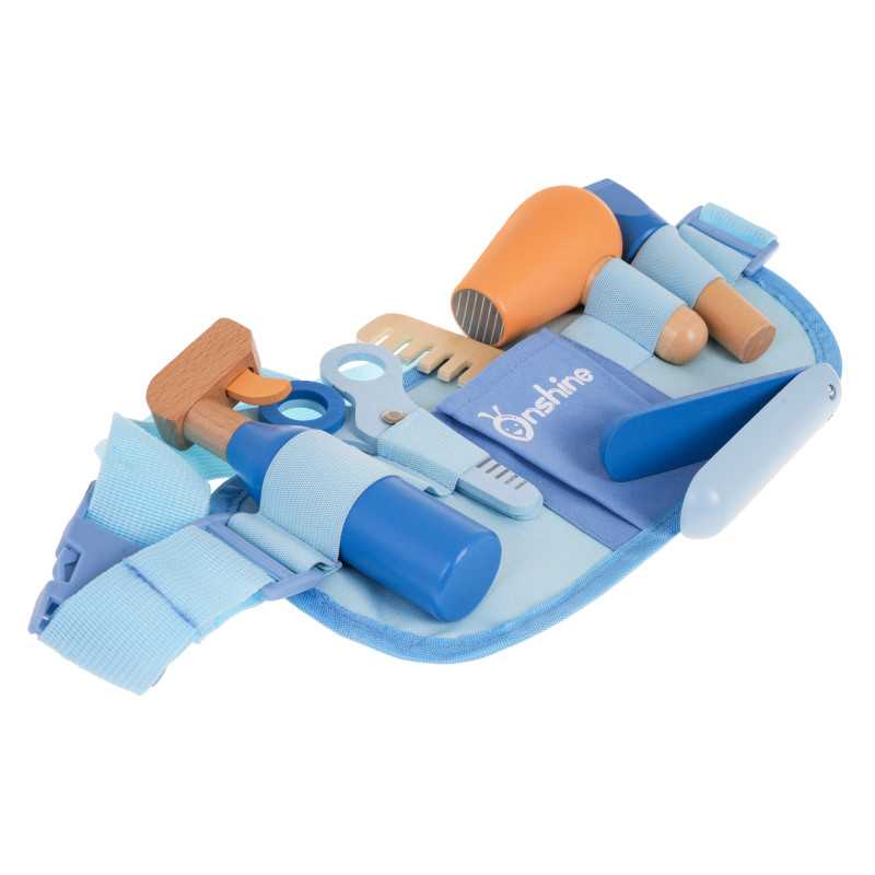 Medinis kirpyklos rinkinys su reguliuojamu diržu ir priedais tinka vaikams nuo 3 metų. Visi kirpyklos reikmenys pagaminti iš medžio, neturi aštrių briaunų, yra saugūs ir patvarūs. Diržas yra reguliuojamas ir užsegamas užtrauktuku. Centrinėje dalyje yra kišenė ir penki skyriai, kuriuose telpa kirpimo žirklės, plaukų džiovintuvas, tiesintuvas, kirpimo mašinėlė, šukos ir plaukų lakas. Žaisdami su šiuo rinkiniu skatinsite vaiko vaizduotę.