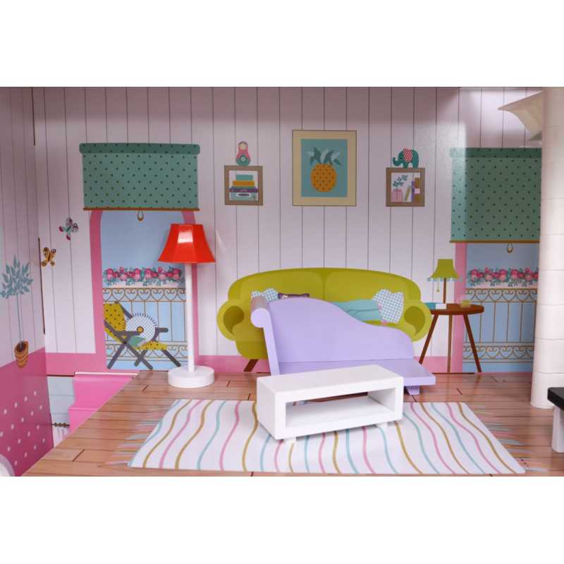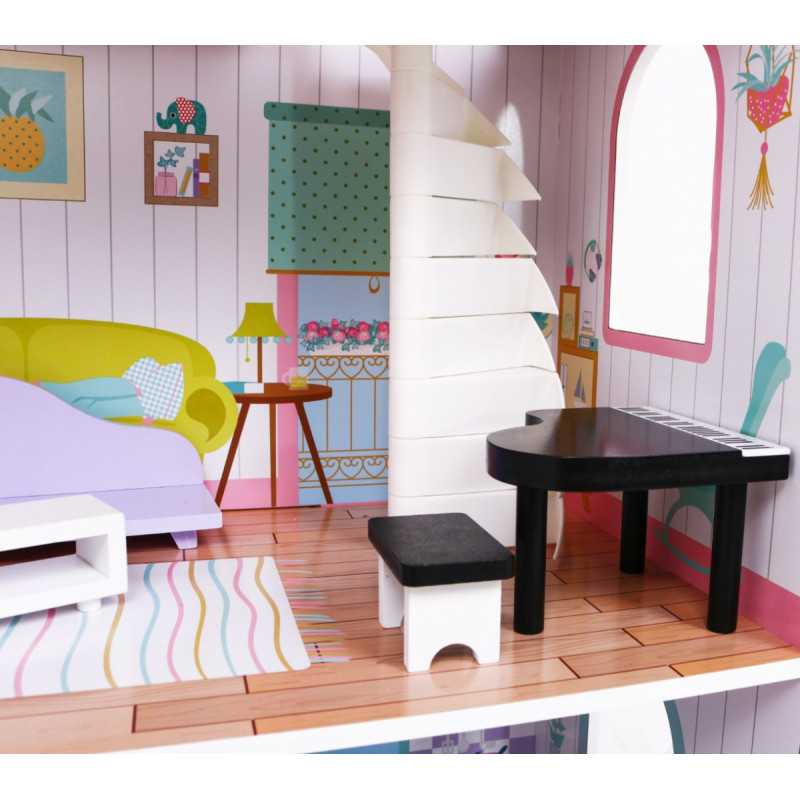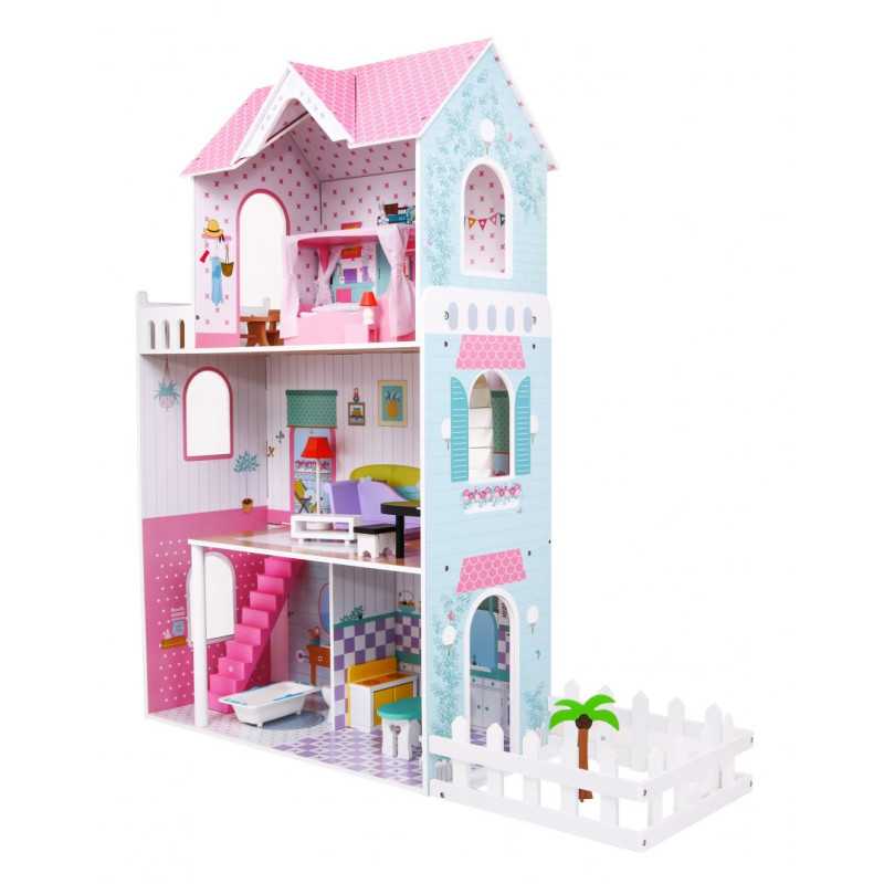 Mega didelis medinis lėlių namelis su įranga ir sodu - tinkamas vaikams nuo 3 metų. Puikiai pagamintas, gausiai aprūpintas, jis taps jūsų vaiko svajonės išsipildymu. Siūlomas namelis pagamintas iš aukštos kokybės medienos, tvirtos ir ilgaamžės medžiagos, jis yra stabilus ir atsparus išoriniams pažeidimams. Medinis namelis ir mediniai jo įrangos elementai nudažyti saugiais, netoksiškais dažais. Švelnios pastelinės namo ir įrangos spalvos yra neįtikėtinas šio rinkinio privalumas. Namelis tarnaus jūsų vaikams daugelį metų. Žaidimas nameliu moko kūrybiškumo, lavina vaizduotę, teigiamai veikia jūsų vaiko vystymąsi ir kartu suteikia daug teigiamų emocijų ir įspūdžių. Namelį sudaro 3 aukštai, pirmame aukšte yra virtuvė su valgomuoju, vonios kambarys ir laiptai į antrąjį aukštą. Antrame aukšte yra svetainė su laiptais į kitą aukštą. Trečiajame aukšte yra miegamasis su terasa. Šalia namo yra graži balta tvora (sodas) su medžiu. Pakuotėje pateikiama namo surinkimo instrukcija. |