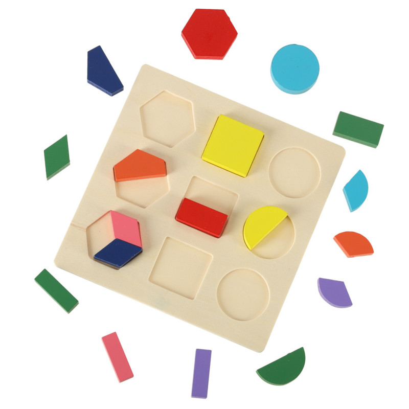 Spalvinga dėlionė, pagaminta tik iš medžio.