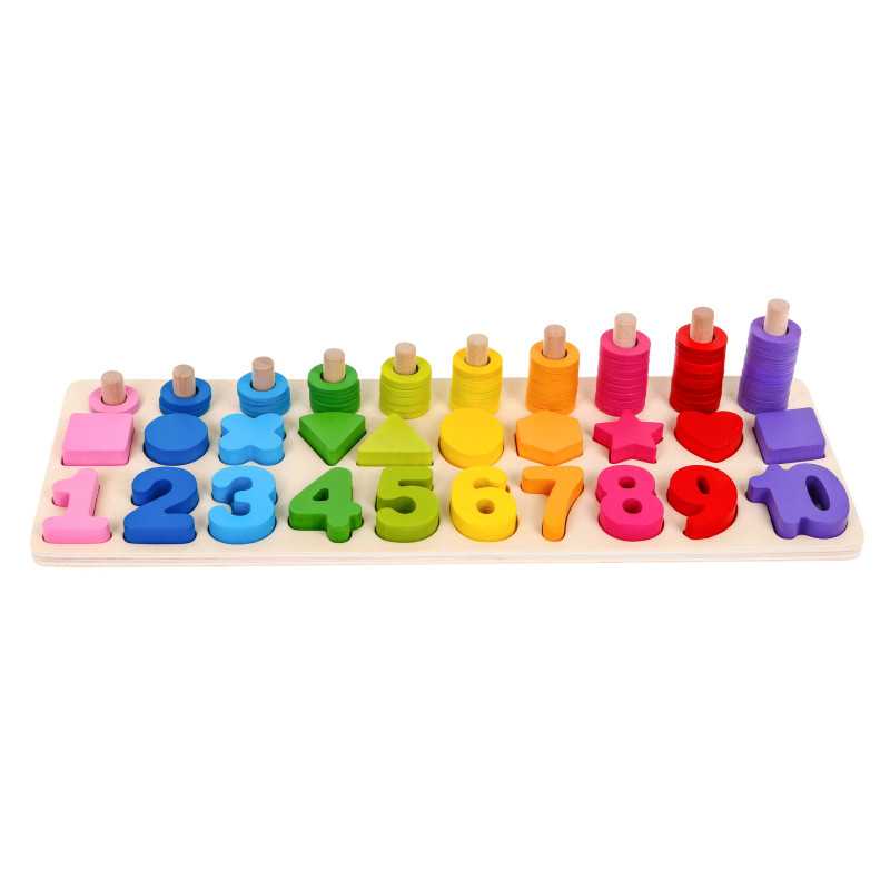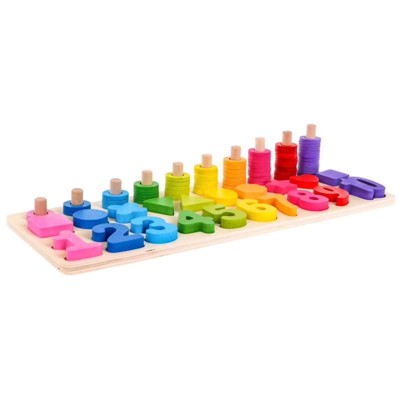 | Medinis mokomasis rinkinys, skirtas vaikams nuo 3 metų. Pramogos ir mokymasis supažindina su aritmetika, spalvų, dydžių ir kiekių atpažinimu. | |