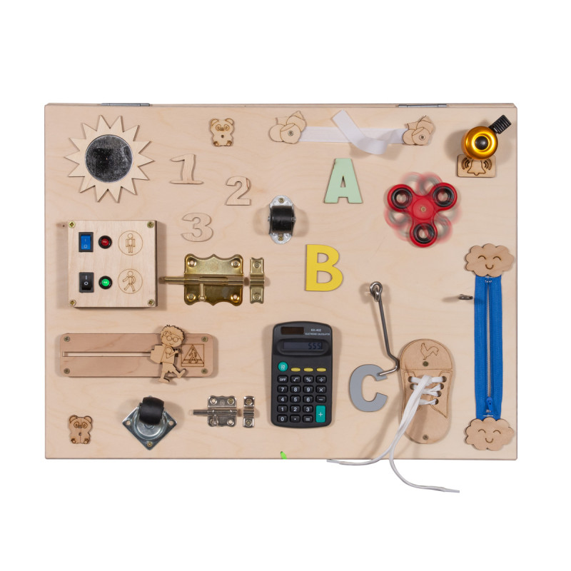 Tačiau ar yra būtent tokių lentų? Tai naudojamas paviršius, šiuo atveju medinis, ant kurio yra daugybė mažesnių elementų - visi jie specialiai parinkti taip, kad jūsų vaikas galėtų tinkamai vystytis!