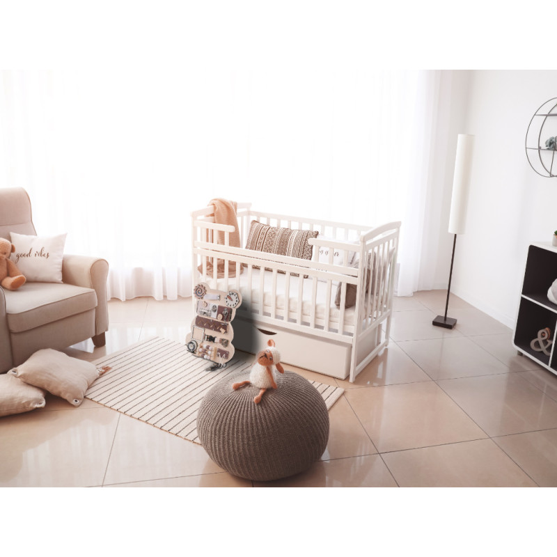 Dauguma gaminio komponentų pagaminti iš medžio, todėl jis itin tvirtas, o papildomos dalys pagamintos iš plastiko arba metalo! Visi kraštai buvo kruopščiai nušlifuoti, kad būtų išvengta pavojaus, jog į juos įstrigs atplaiša ir kaip nors sužeis jūsų vaiką!