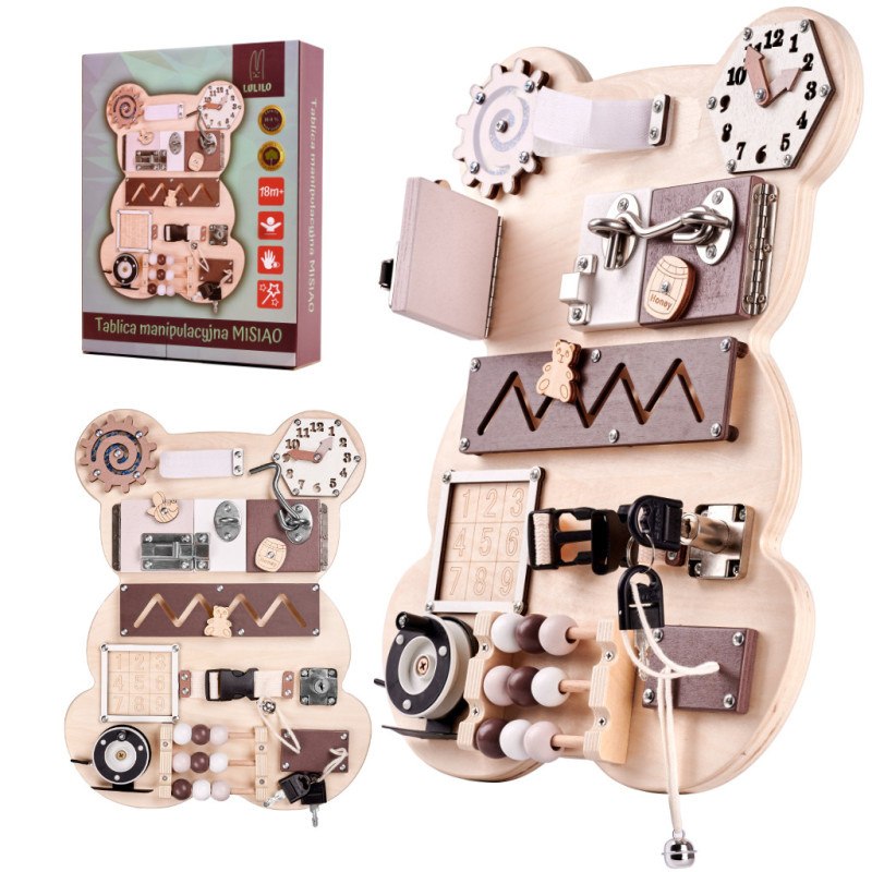 Kad pritrauktų vaiko dėmesį ir paskatintų žaisti, lenta yra mielo meškiuko formos, o spalvos - malonios ir malonios akiai!
