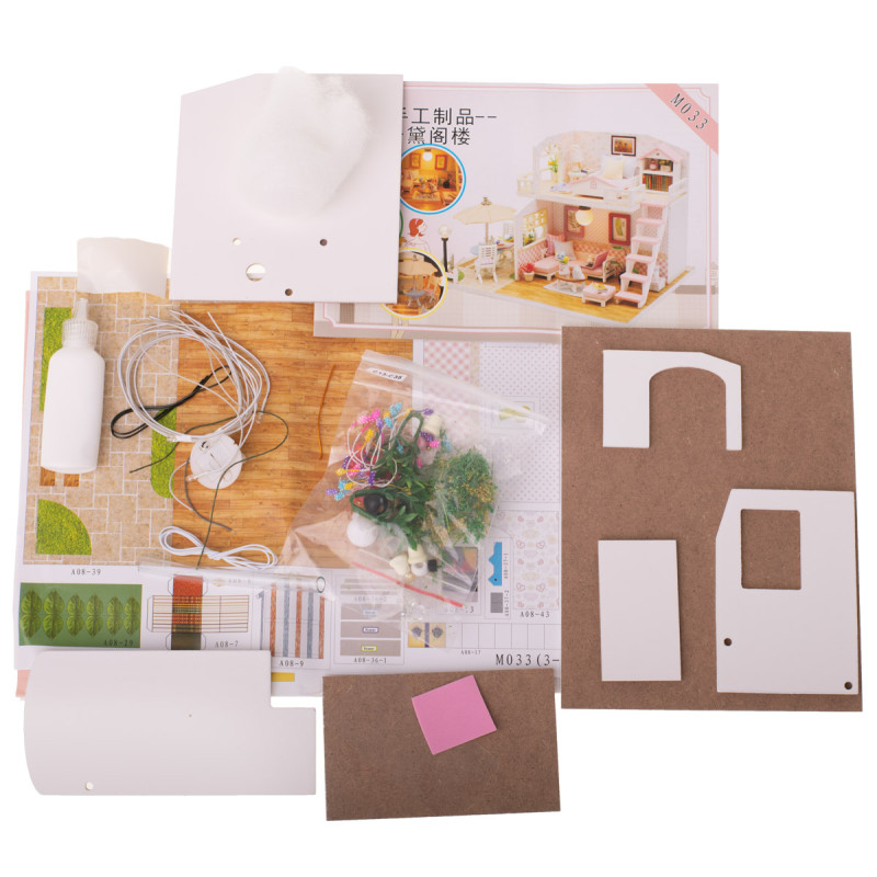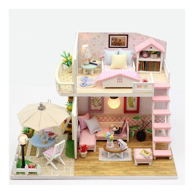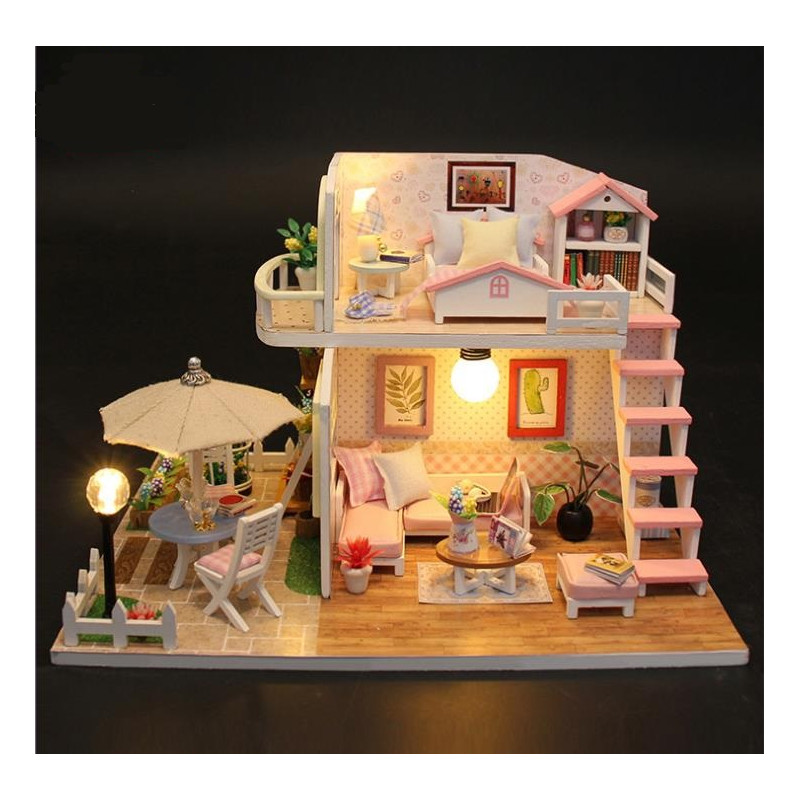 Surenkamas dviaukštis Lėlių namas medinis modelis led, DYI
