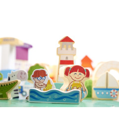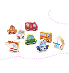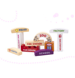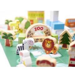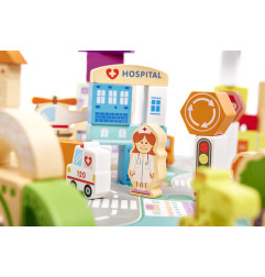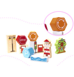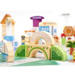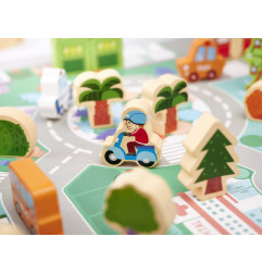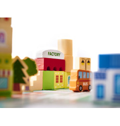 Mieste neturi trūkti svarbiausio dalyko - gatvių ir automobilių. Rinkinyje yra gatvės juostos dėlionė, kuri papildo rinkinį. Įvairiaspalvių plytų rinkinys - tai pasiūlymas kūrybiškam, besivystančiam žaidimui.