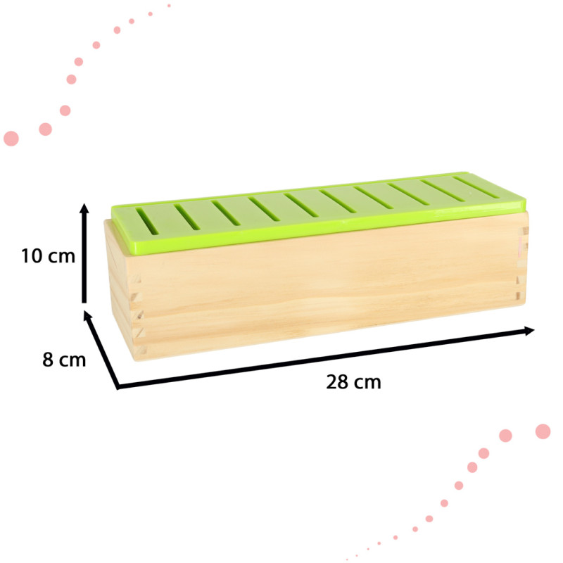 Medinės dėžės matmenys: 28 cm x 10 cm x 8 cm
