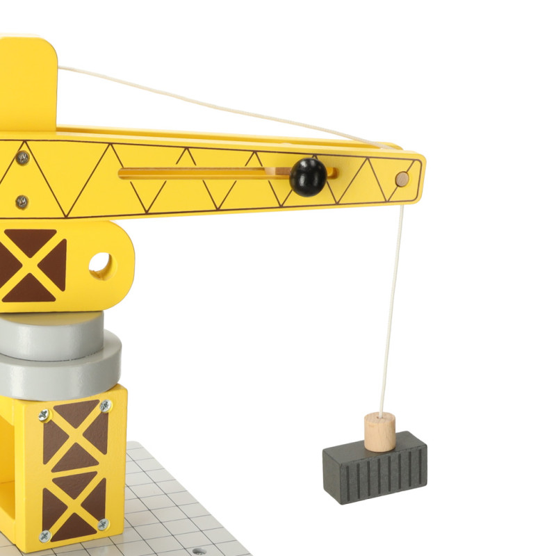Interaktyvus žaidimas - kranas yra žaislo centras, kuriuo vaikas gali pasukti ir pakelti konteinerius, imituodamas darbą tikroje laivų statykloje.