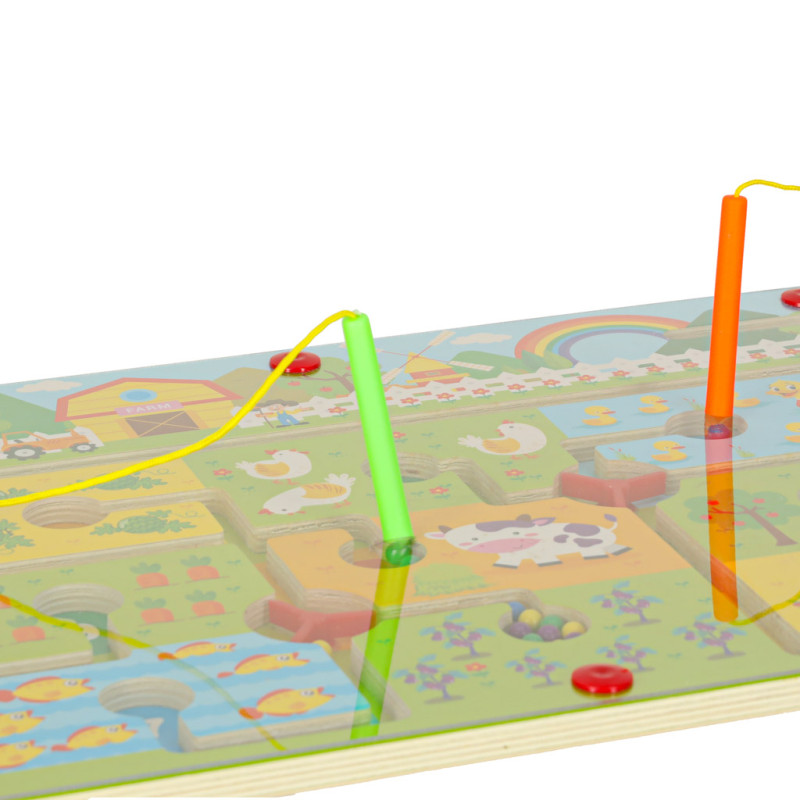 MAGNETINIS ŪKIO LABIRINTAS - EDUKACINIS KELIONIŲ ŽAIDIMAS VAIKAMS SU MAGNETINIU ŽYMEKLIU IR SPALVOTAIS KAMUOLIUKAIS 3+
