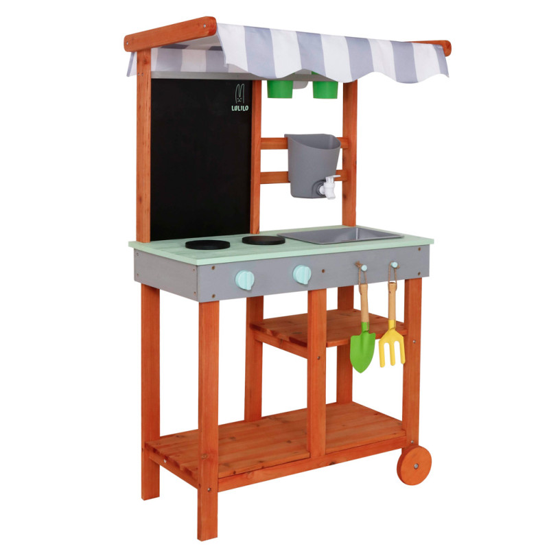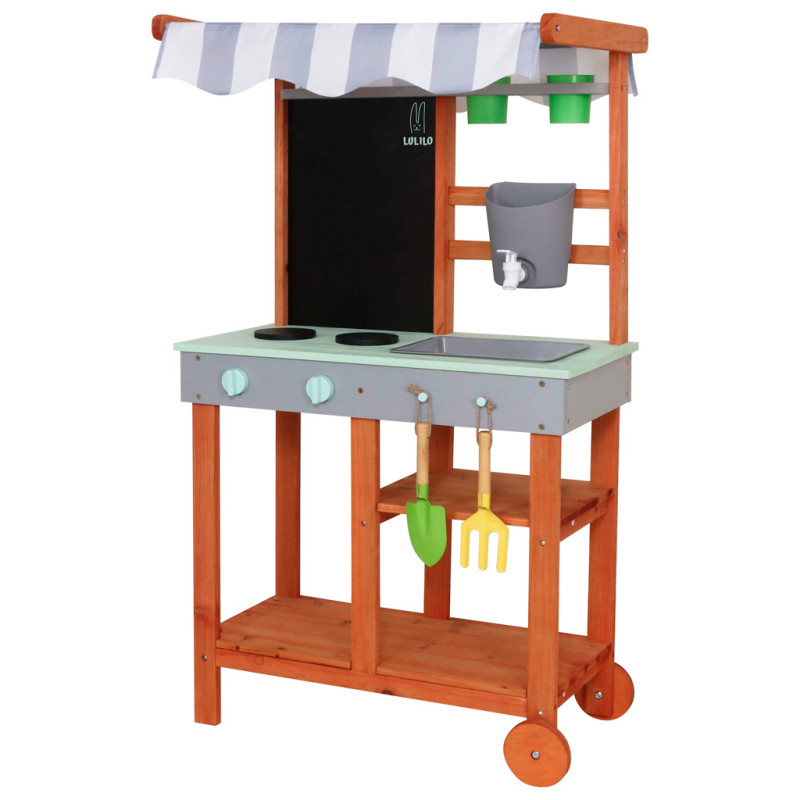 Medinė sodo virtuvėlė mažiesiems sukurta atsižvelgiant į vaiko komfortą ir tėvų patogumą. Purvo virtuvėlėje su daiktų laikymo vieta vaikai gali patys tvarkyti savo žaislus ir priedus - taip jie mokosi būti tvarkingi ir išradingi. Kiekviena lentyna ir laikymo skyrius turi savo praktinę paskirtį ir kartu yra estetiška visumos dalis.