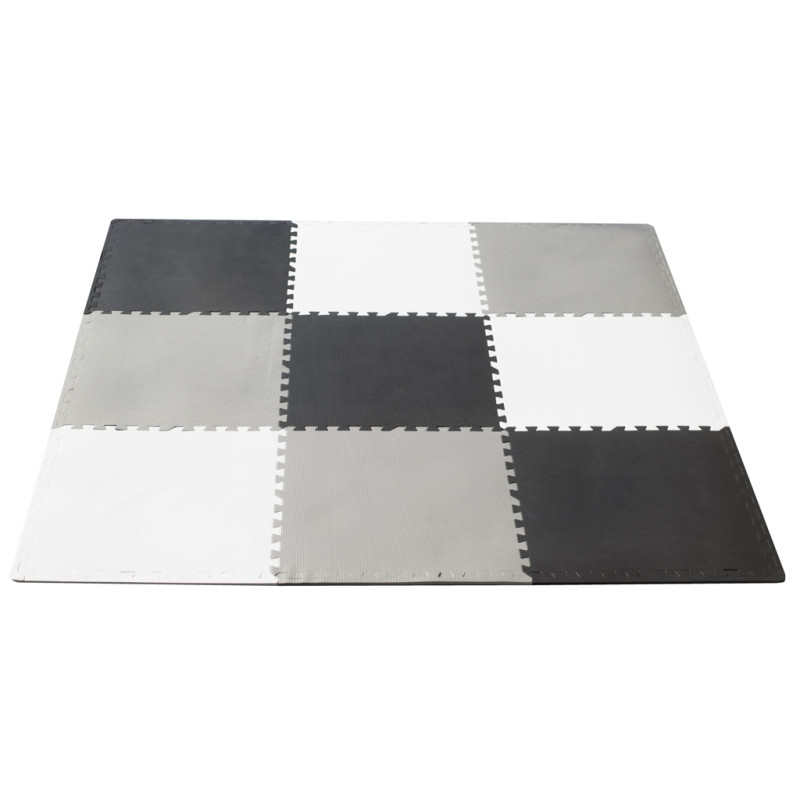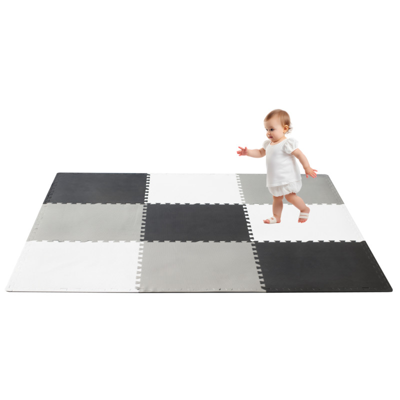 Didelis kilimėlis suteikia daug erdvės puikiems žaidimams! Su juo galite paskirti vietą, kurioje mažylis galės netvarkingai tvarkytis ir barstyti žaislus! Vieno elemento dydis - iki 60 cm x 60 cm! O tai su visais 9 elementais leidžia pažymėti tikrai didelį plotą!
