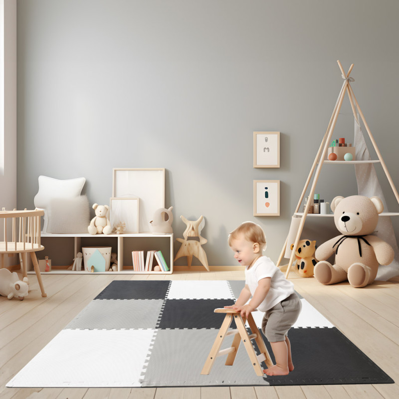 Pilkos ir kreminės spalvos, minkštai atrodantis putplasčio kilimėlis paskatins jūsų mažylį žaisti ir puikiai tiks bet kokiame kambaryje, nesvarbu, koks jo dekoras!