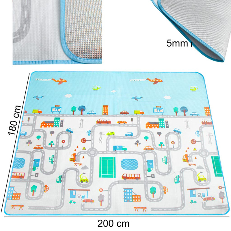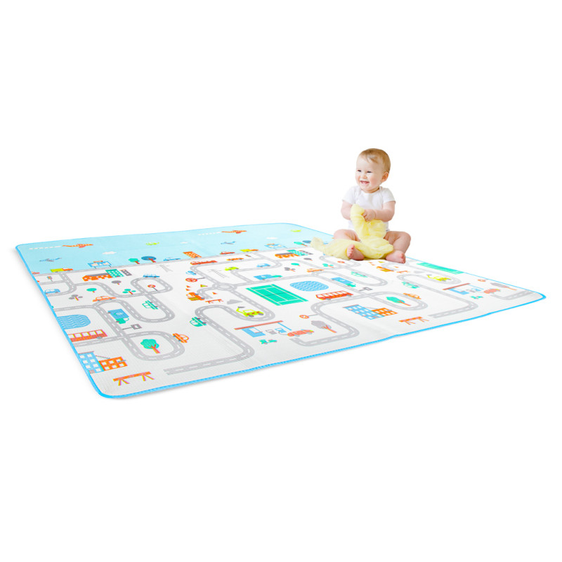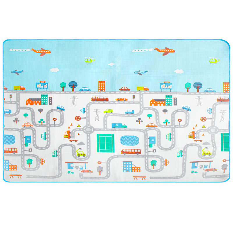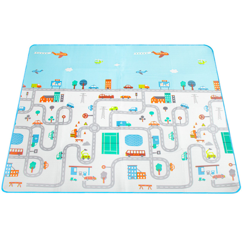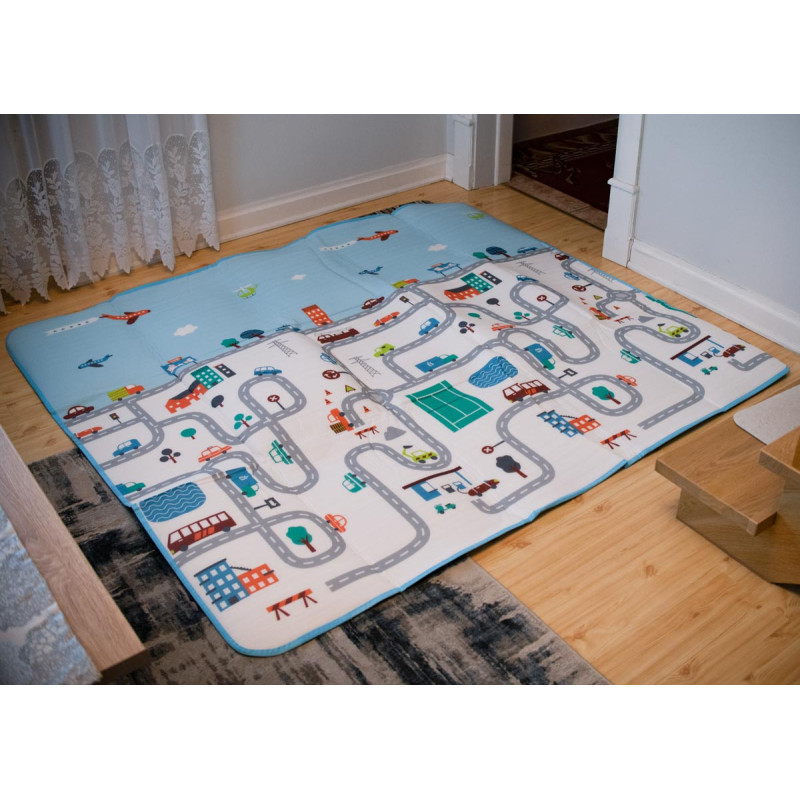 Didelis vienpusis putplasčio žaidimų kilimėlis su miesto raštu.