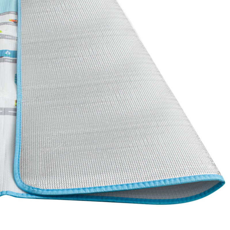 Po kilimėliu yra šilumą izoliuojančios plėvelės sluoksnis, todėl jį galima pasiimti į sodą ar paplūdimį.