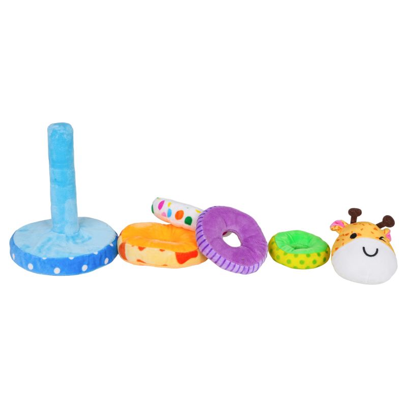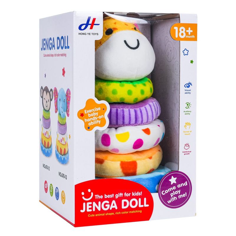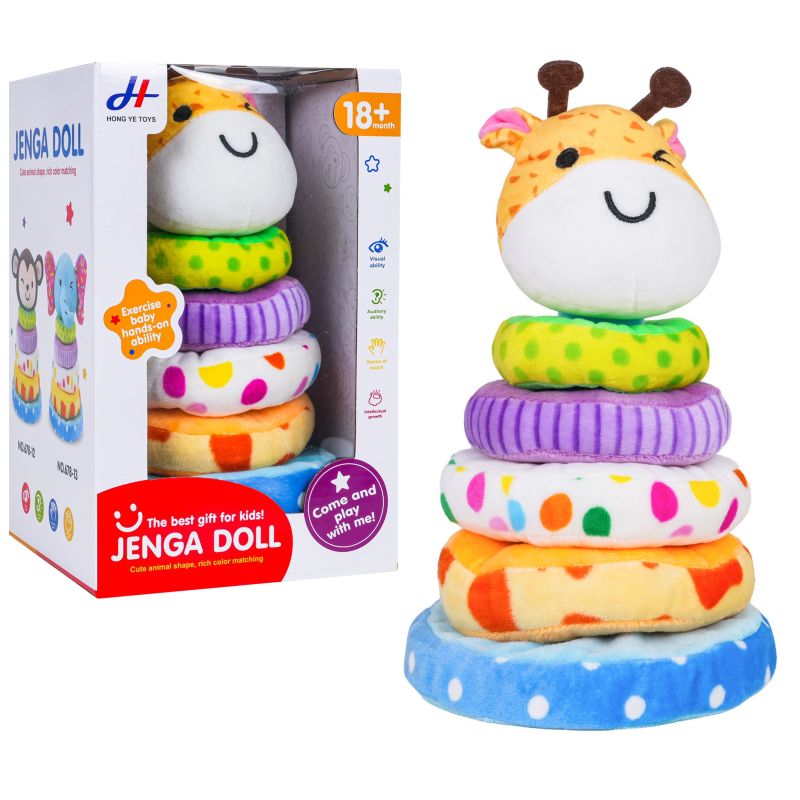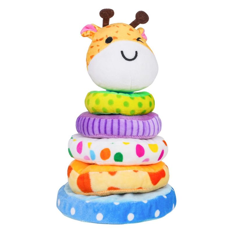 Minkšta žirafos formos piramidė, skirta vaikams nuo aštuoniolikos mėnesių amžiaus. Žaislas pagamintas iš pliušo, todėl yra malonus liesti, o ryškios medžiagų spalvos patraukia kūdikio dėmesį ir skatina žaisti. Rinkinį sudaro pagrindas, keturi skirtingų dydžių minkšti žiedai ir žirafos galva. Papildoma funkcija – galvoje esantis pyplys, kuris paspaudus skleidžia garsą. Šis žaislas lavina mažas rankytes ir moko derinti formas.