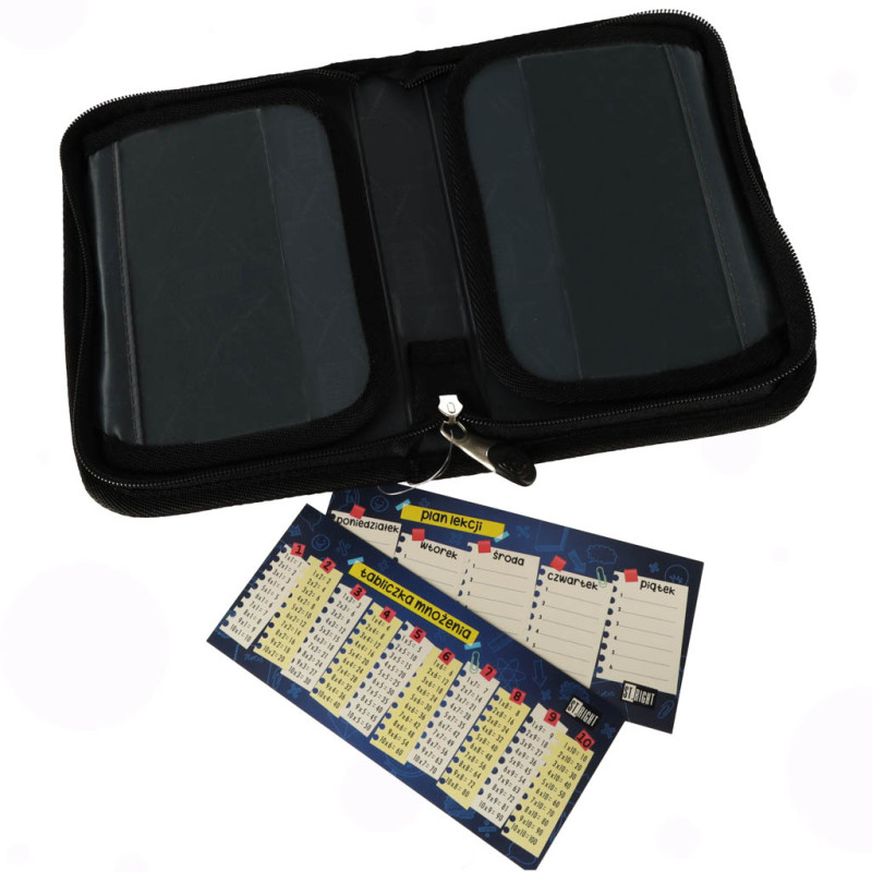 Su skyreliais ir daugybe priedų, kad būtų galima lengvai tvarkyti mokyklines priemones