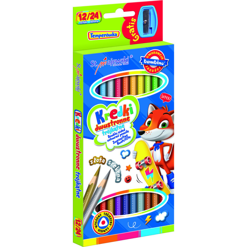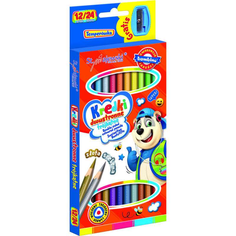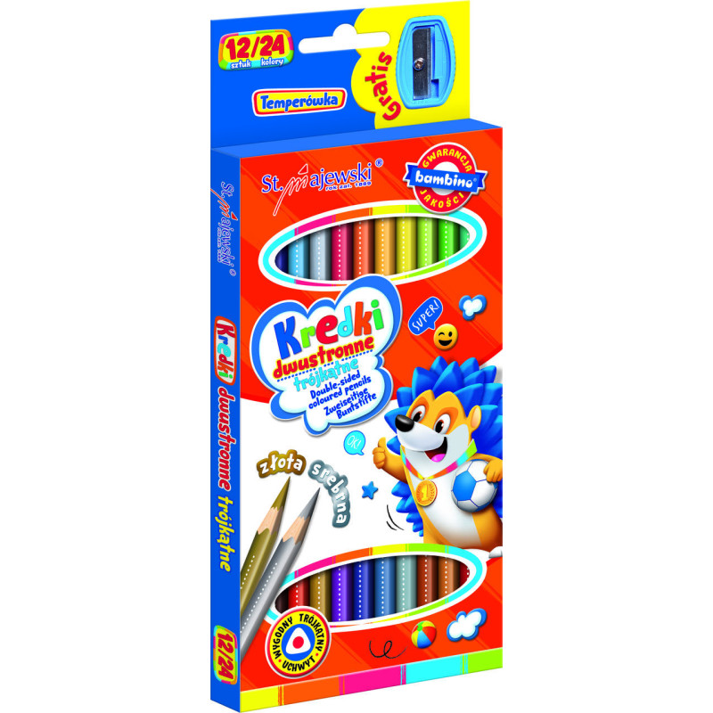 Dvipusiai trikampiai mokykliniai pieštukai, 12/24 spalvų