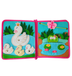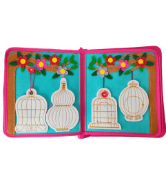 Rinkinį sudaro: montessori knyga, kuprinė, apsauginis maišelis, įpakavimo dėžutė, kuri puikiai tiks kaip dovana.