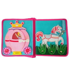 „Mano pirmoji knyga – princesė“ siūlo magišką sensorinę žaidimo patirtį vaikams, kurie mėgsta pasakas ir princesių nuotykius. Ji supažindina su žaviu karališkųjų pilių, spindinčių karūnų, gražių suknelių ir žavingų pasakų scenų pasauliu. Ši rami knyga skatina kūrybiškumą, smulkiąją motoriką ir kognityvinį vystymąsi, nes vaikai tyrinėja kiekvieną puslapį, rengia princesę, ruošia karališkus vaišes ir atranda paslėptus lobius pilyje. Nuostabi kelionė į vaizduotę, derinama su gražia, derančia kuprine, kad būtų smagu kelyje.