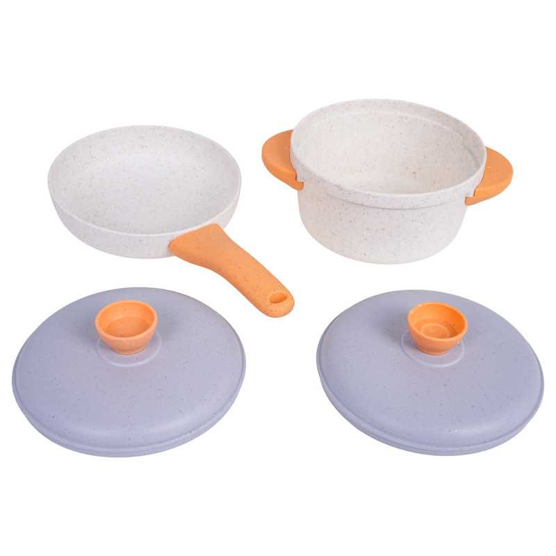 Virtuvės indų rinkinys, pagamintas iš bioplastiko, tinka vaikams nuo trejų metų amžiaus. Rinkinį sudaro 10 dalių. Į jį įeina keptuvė su dangčiu, puodas su dangčiu, samtis, mentelė, du šaukštai ir du puodeliai. Šis rinkinys siūlo begalines žaidimo galimybes. Medžiaga, iš kurios pagamintas rinkinys, yra draugiška vaikams ir aplinkai. Jis yra sterilizuotas 120°C (250°F) temperatūroje ir perdirbamas.
