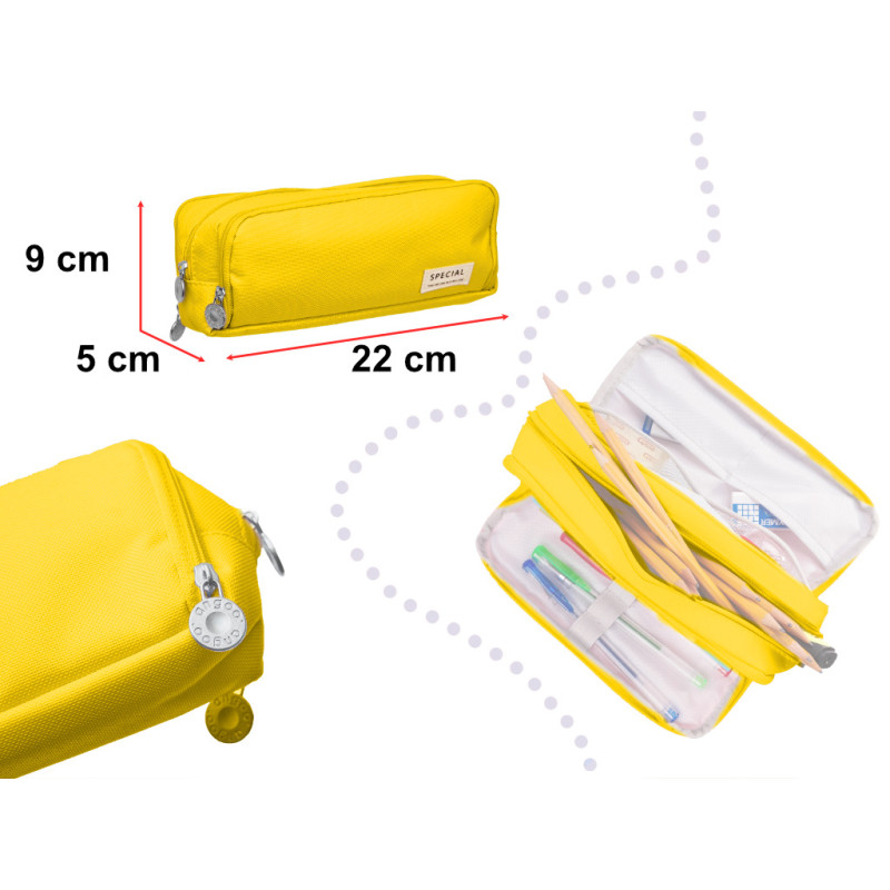 Mokyklinis pieštukinis dėklas trigubas maišelis tuštybės dėklas geltonas