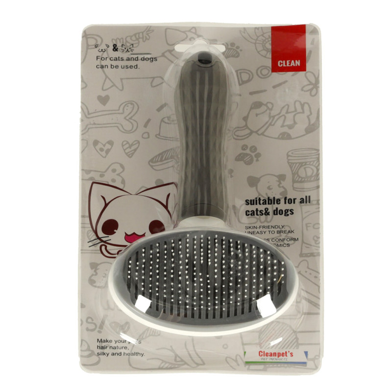 Be to, šepetys turi savaiminio išsivalymo mechanizmą. Tai reiškia, kad šukuojant savo augintinį nereikės rauti plaukų iš tarp šepetėlio dantų. Tiesiog paspauskite mygtuką, ir visi iššukuoti plaukai lengvai pas išalins nuo šepečio.