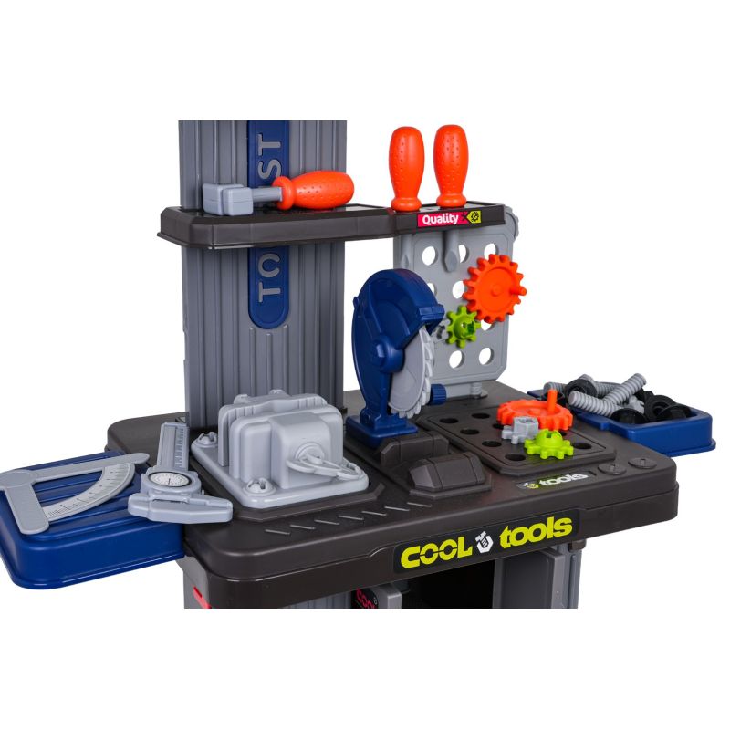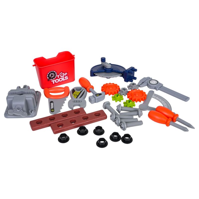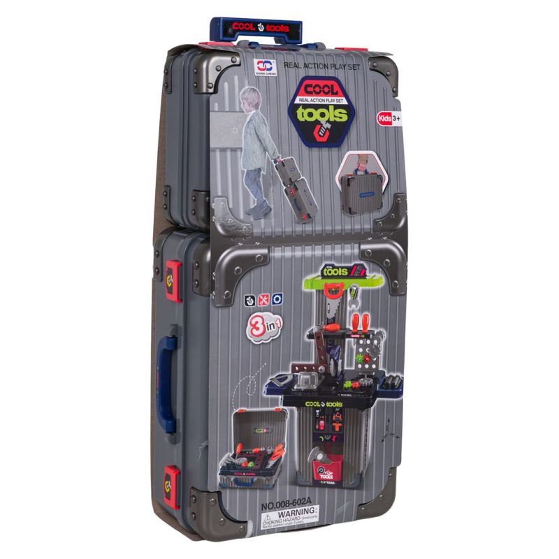 Gausiai sukomplektuotas „3-in-1“ rinkinys – du lagaminai, kuriuos galima transformuoti į dirbtuves, skirtas vaikams nuo trejų metų amžiaus. Rinkinys pagamintas iš aukštos kokybės plastiko, atsparaus intensyviam naudojimui. Lagaminuose telpa dirbtuvių konstrukciniai elementai ir priedai, tokie kaip krumpliaračiai, spaustuvas, pjūklas, sukamieji elementai, varžtai, atsuktuvai ir daug daugiau.