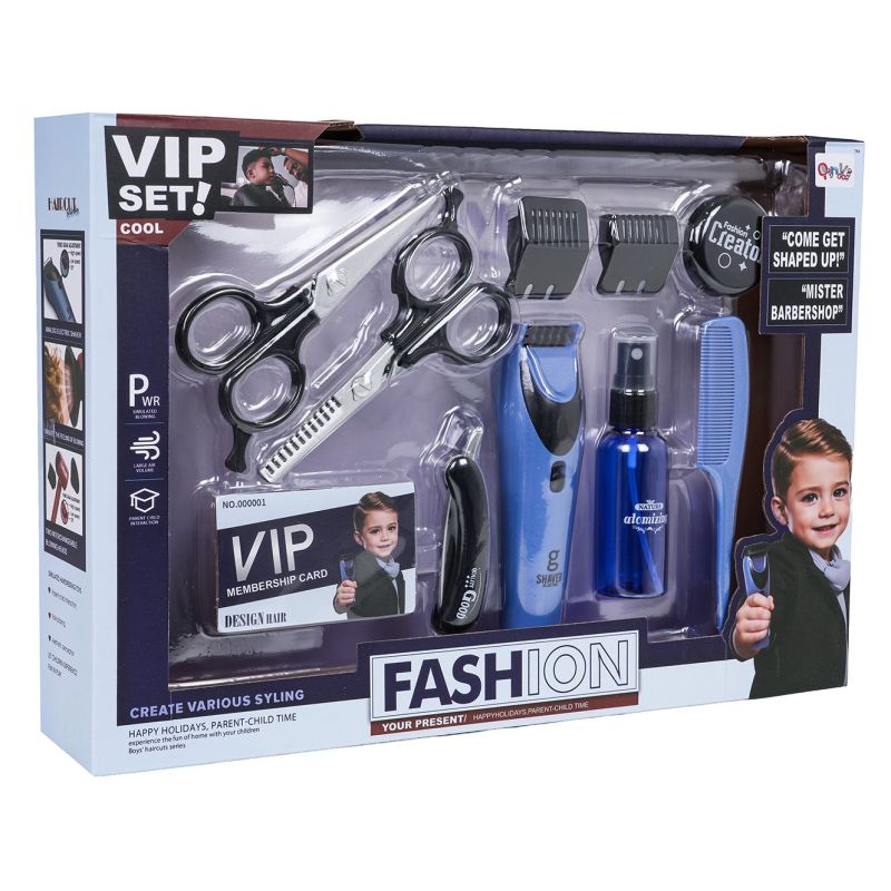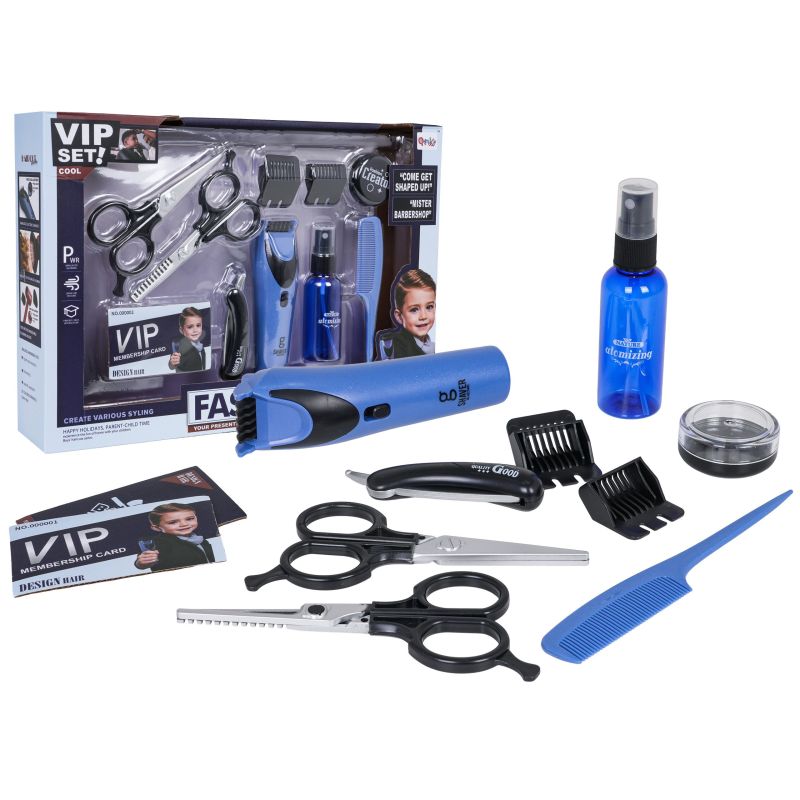 Gausiai sukomplektuotas kirpėjo rinkinys, skirtas vaikams nuo trejų metų amžiaus. Šis 11 elementų rinkinys pagamintas iš aukščiausios kokybės medžiagų, užtikrinančių ilgalaikį naudojimą. Rinkinyje yra kirpimo mašinėlė, dviejų tipų žirklės, skustuvas, du mašinėlės antgaliai, dviejų rūšių barzdos priežiūros priemonių talpyklos, šukos ir dvi VIP kortelės. Su šiuo išsamiu rinkiniu jūsų vaikas galės mėgautis kirpimu, modeliavimu ir šukuosenų kūrimu. Kirpimo mašinėlė turi garso efektus ir judančius ašmenis. Ji maitinama 2 x 1,5V AAA baterijomis (nepridedamos).