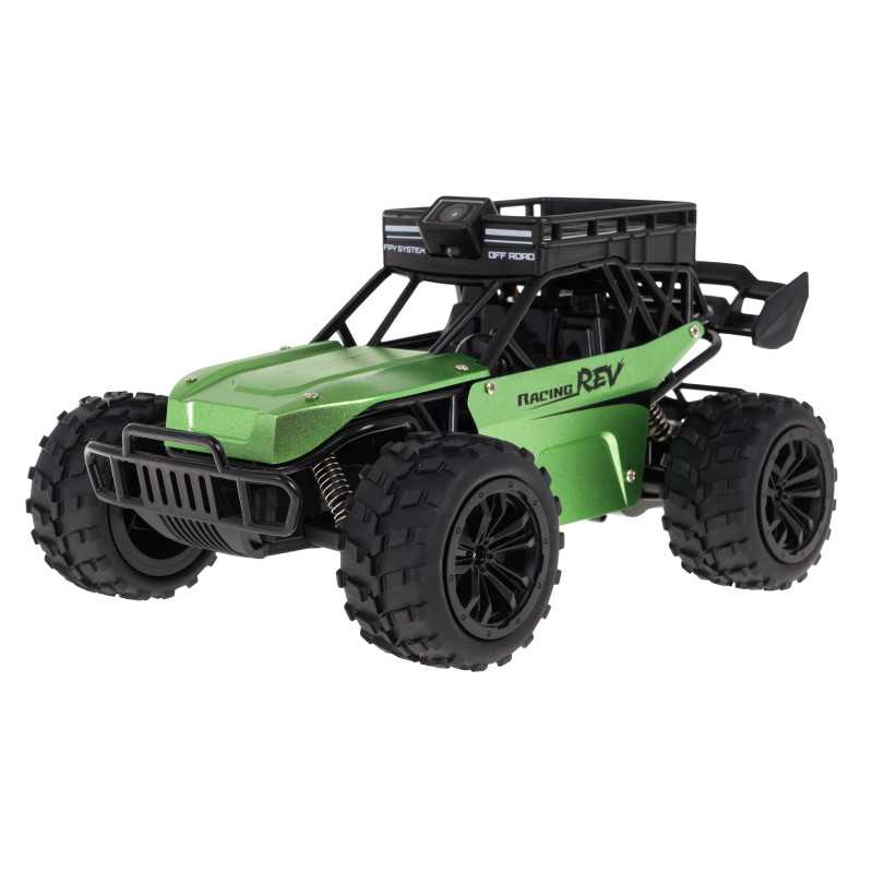 Nuotoliniu būdu valdomas visureigis su aukštos kokybės kamera ir balso dialogo funkcija skirtas vaikams nuo 6 metų. Automobilis juda pirmyn ir atgal, sukasi į kairę ir į dešinę, užlipa ant kliūčių ir be problemų jas įveikia. Guminės, neslystančios padangos, nepriklausomi amortizatoriai, priekiniai ir galiniai buferiai ir jautri vairo sistema turi didelę įtaką vairavimo kokybei. Visureigyje sumontuota aukštos kokybės "Wi-Fi" kamera su realiuoju laiku perduodamu vaizdu, kuri užtikrina sklandų tiesioginį duomenų perdavimą ir tolimą vaizdą priešais transporto priemonę, taip pat galimybę fotografuoti. Dialogo balsu funkcija leidžia perduoti balsą į transporto priemonės kėbulą ir iš kėbulo į telefoną. Visureigį maitina 3, 7 V 500 mAh akumuliatorius, akumuliatorius įeina į komplektą. Nuotolinio valdymo pultą maitina 2 x AA 1, 5 V baterijos, baterijos į komplektą neįeina. Transporto priemonės specifikacijos: