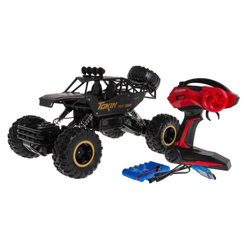 Nuotoliniu būdu valdomas visureigis, pagamintas 1:12 masteliu, su 4 varomaisiais ratais, skirtas vaikams nuo 3 metų. Transporto priemonė turi dideles gumines padangas ir amortizatorius, ji gali įveikti net sudėtingą vietovę. Transporto priemonės konstrukcija yra apsaugota nuo susidūrimo, atspari smūgiams ir kritimams, todėl automobilis pasižymi geresnėmis važiavimo savybėmis. Žaislas valdomas nuotolinio valdymo pulteliu naudojant 2, 4 GHz bangas. Maitinamas 7, 2 V akumuliatoriumi (pridedamas) - automobilis ir 2 x AA (neįeina į komplektą) - nuotolinio valdymo pultas. Specifikacija - mastelis 1:12, - 2.4G nuotolinio valdymo pultas, - važiuoja visomis kryptimis: pirmyn, atgal, į dešinę, į kairę, lipa, - didelės guminės padangos, - 4 varantieji ratai, - aukšti amortizuoti stabdžiai, - tvirtas metalinis kėbulas, - pasukimo reguliavimas, - didelės talpos 7, 2 V ličio akumuliatorius, - LED žibintai ant transporto priemonės stogo. | |