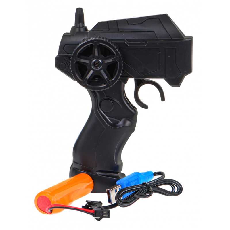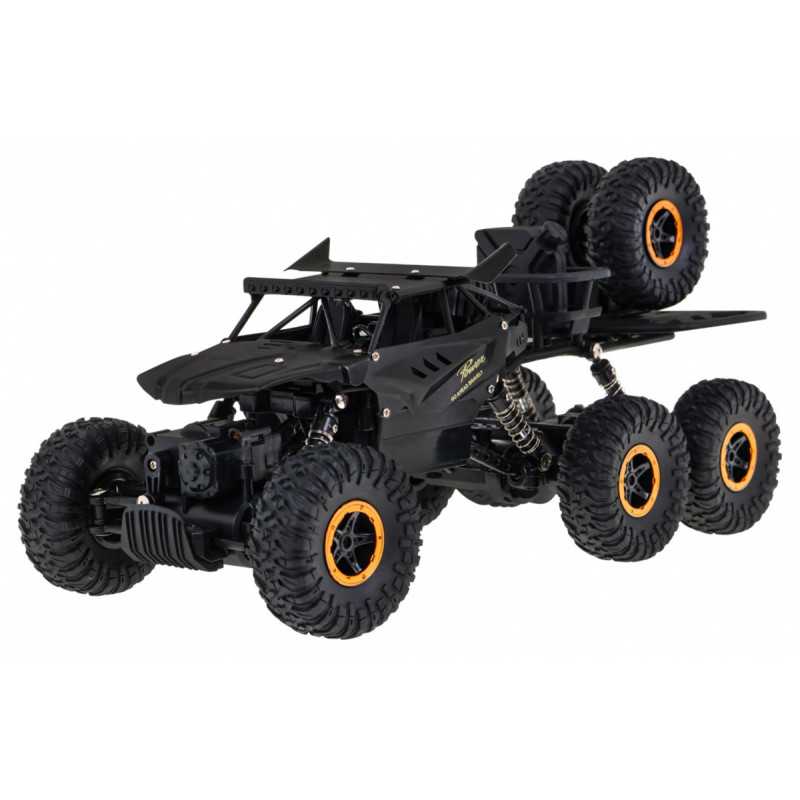| 1:10 mastelio visureigis su 6 varomaisiais ratais - tinkamas vaikams nuo 6 metų. Transporto priemonė turi dideles gumines padangas ir amortizatorius, ji gali įveikti net nelygias vietoves. Transporto priemonės viršuje yra du atsarginiai ratai. Transporto priemonės konstrukcija yra apsaugota nuo susidūrimo, atspari smūgiams ir kritimams, todėl automobiliui nebaisios jokio kliūtys. Žaislas valdomas nuotolinio valdymo pulteliu 2, 4 GHz bangomis. Maitinamas 3, 7 V 1200 mAh baterija (pridedama) - automobilis ir 2 x AAA (neįeina į komplektą) - nuotolinio valdymo pultas. | |