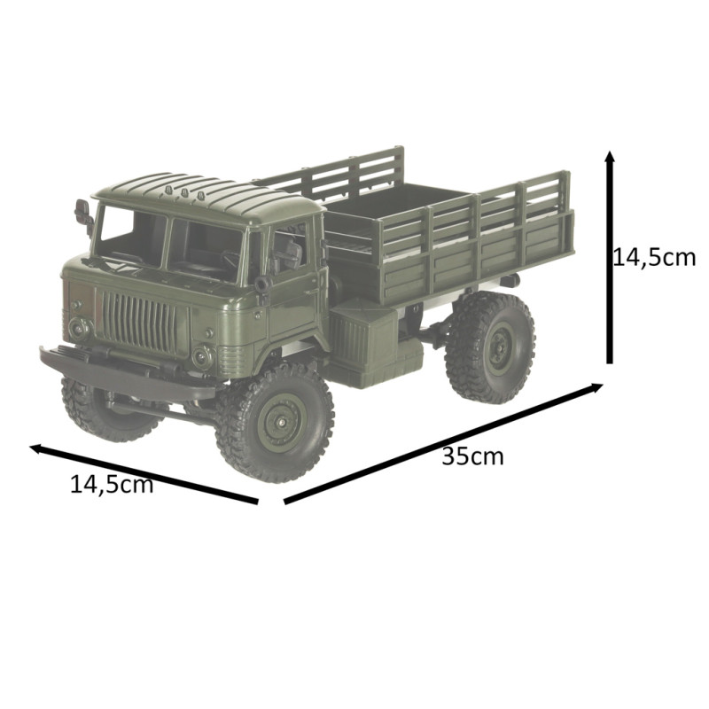 1:16 mastelio transporto priemonė stebina tikroviškumu ir dėmesiu detalėms. Šviečiantys žibintai ir kruopščiai atkurti elementai leidžia žaisti tikrą karinę ekspediciją. Keturių varančiųjų ratų pavara suteikia pasitikėjimo, kad sunkvežimis įveiks bet kokias sąlygas - be menkiausių problemų įveiks smėlį, žolę ir nelygų reljefą. Intuityvus valdiklis užtikrina sklandų vairavimą ir tikslų manevravimą, o ilgas akumuliatoriaus veikimo laikas garantuoja valandų valandas jaudinančios pramogos.