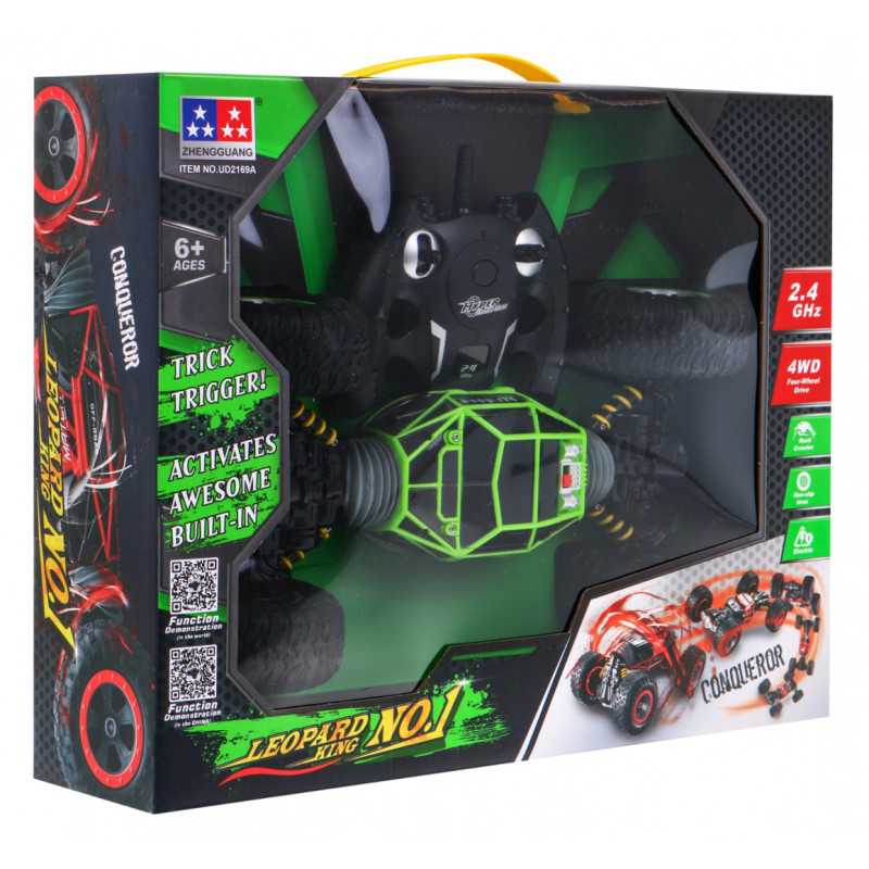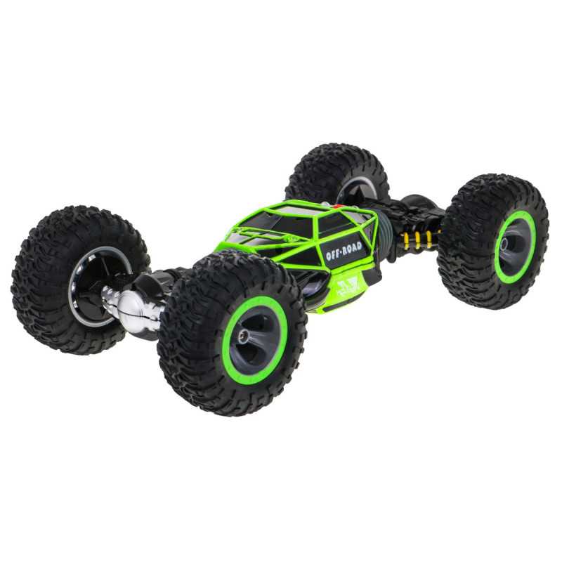 | Nuotolinio valdymo pulteliu valdoma transporto priemonė - tinkama vaikams nuo 6 metų. Transporto priemonė turi keturių varančiųjų ratų pavarą, todėl lengvai įveikia kliūtis, pavyzdžiui, akmenis, duobes ar aukštą žolę. Automobilis gali būti vairuojamas vertikalioje arba pakeltoje (pakeliamoje) padėtyje. Dėl guminių ratų automobilis gerai laikosi ant žemės. Visus manevrus galima atlikti nuotolinio valdymo pulteliu. Žaislą maitina 4, 8 V akumuliatorius - automobilis (pridedamas), nuotolinio valdymo pultelis - 2 x AA 1, 5 V (neįtrauktas į komplektą). | |