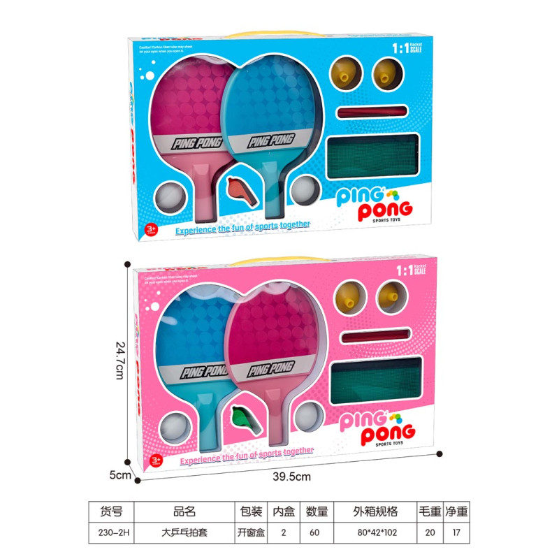 Šis stalo teniso rinkinys tinka vaikams nuo 3 metų amžiaus, tačiau skirtas ir vyresniems vaikams. Rinkinį labai lengva surinkti. Tiesiog išlankstykite tinklelį ir pritvirtinkite jį prie plastikinių stulpelių su siurbtukais, o tada siurbtukais pritvirtinkite visą konstrukciją prie lygaus paviršiaus, pavyzdžiui, stalo. Tuomet energingai atmušinėkite kamuoliuką į kitą tinklo pusę. Į komplektą taip pat įeina švilpukas.
