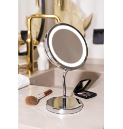 Veidrodis su apšvietimu - tai prietaisas, kuris visiškai pakeičia namų kosmetinių procedūrų kokybę. Dėl apšvietimo, maitinamo 4 AAA baterijomis, nebeliks problemos dėl nepakankamo patalpos apšvietimo. Be to, veidrodis AD 2159 turi 3 kartus didinamąjį stiklą, todėl makiažą galima atlikti labai tiksliai. Veidrodis tinka naudoti ne tik namuose, bet ir kelionėse, nes yra lengvas ir lengvai transportuojamas.
