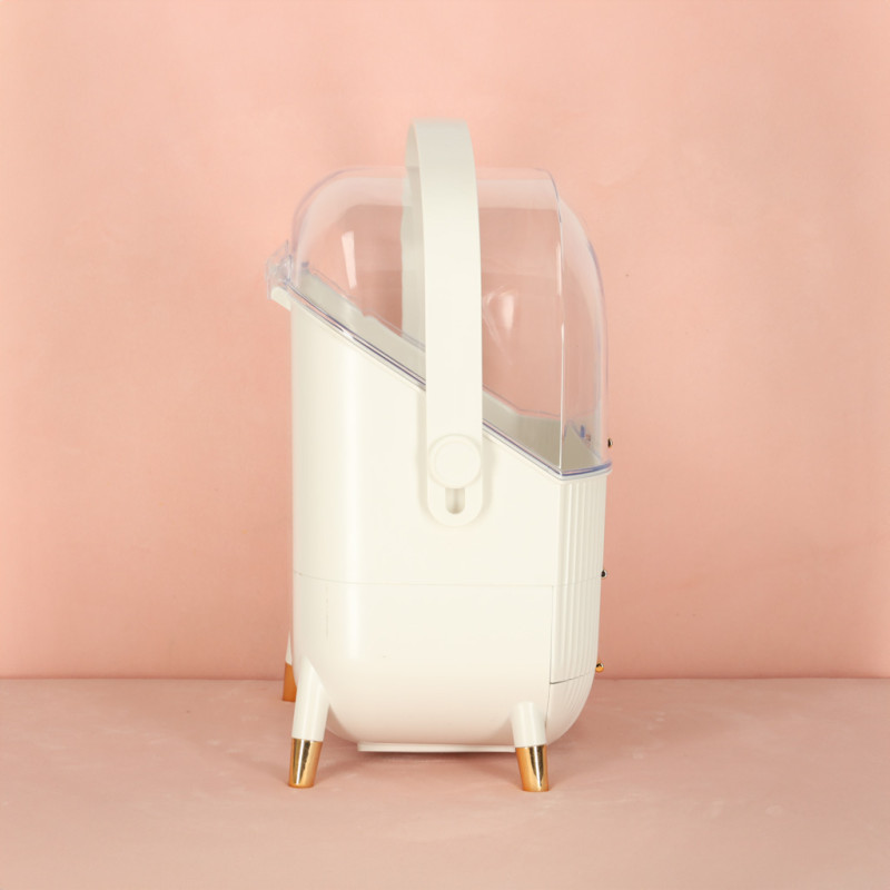 Susipažinkite su unikaliu kosmetikos organizatoriumi su stalčiais, kuris pakeis jūsų kasdienybę. Tai ne tik praktiškas aksesuaras - tai stilinga kosmetikos dėžutė, puikiai deranti prie šiuolaikinio interjero estetikos. Dėl ištraukiamų stalčių ir patogiosrankenos jis taip pat veikia kaip lagamino organizatorius, kurį lengvai galėsite nešiotis visur, kur tik prireiks.