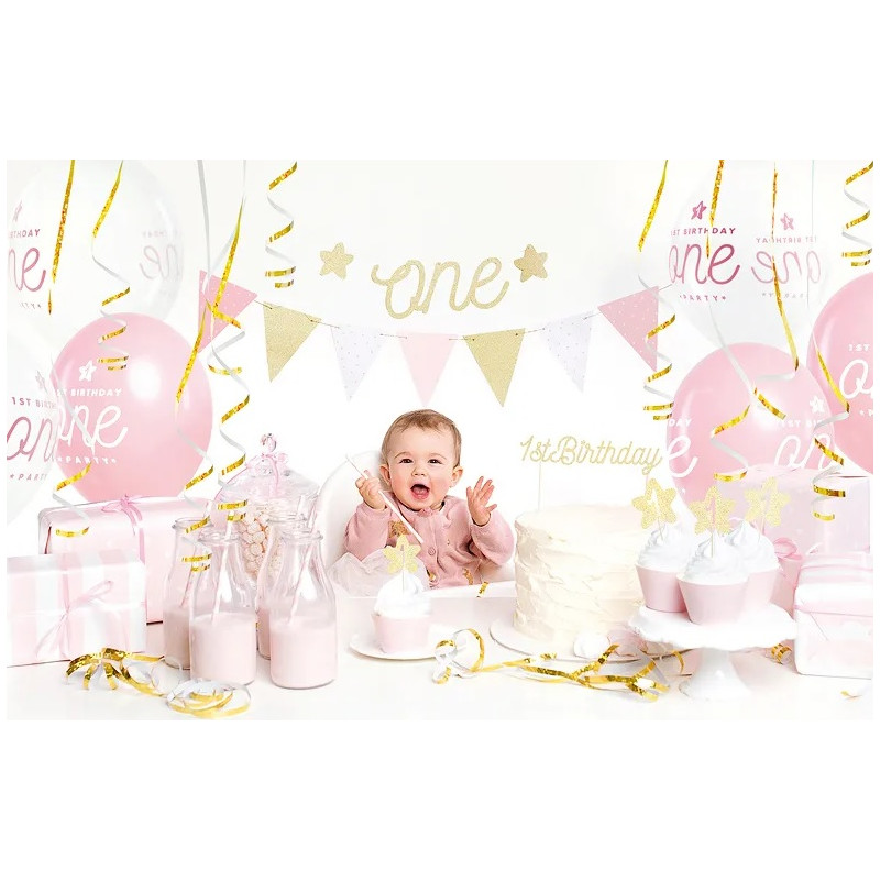 Gimtadienio šventės dekoracijos 1-ojo gimtadienio rinkinys rožinė ir auksinė