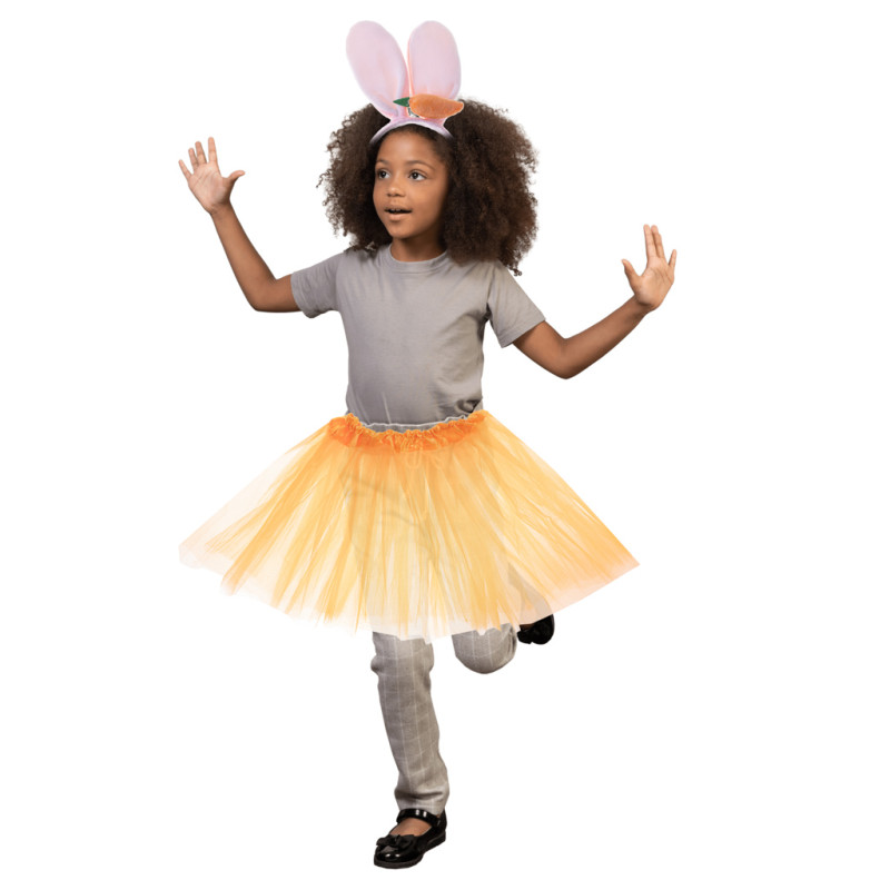 Į rinkinį įeina galvos juosta su minkštomis ausimis ir skania morka, taip pat oranžinis tiulio sijonas - jūsų vaikas galės persirengti visiems gerai pažįstamu gyvūnu!