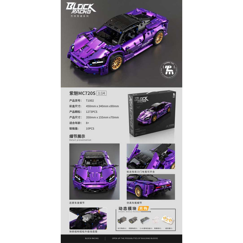 Rinkinys iš 1273 konstravimo kaladėlių, skirtas savarankiškai surinkti violetinį sportinį automobilį. Modelis sukurtas 1:14 masteliu. Žaislas skirtas vaikams nuo 8 metų amžiaus. Kaladėlės ir automobilio elementai pagaminti iš aukštos kokybės ABS plastiko.