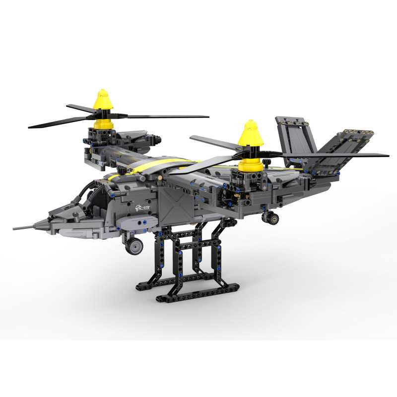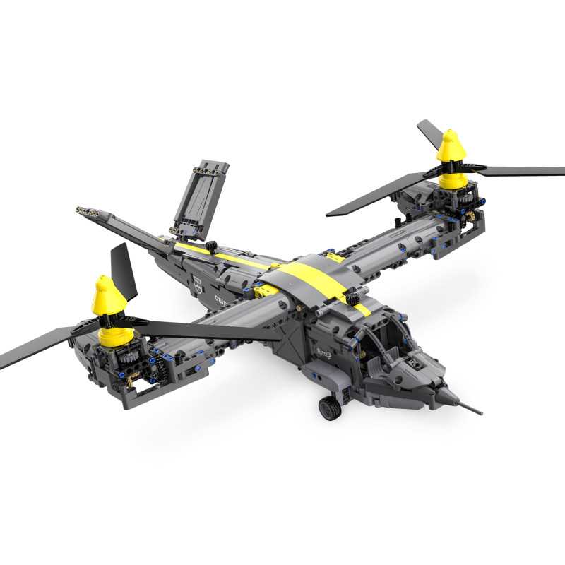 Aukštos kokybės konstruktorių kaladėlės vaikams nuo 8 metų. Rinkinį sudaro 1436 elementai, iš kurių galima sukonstruoti sraigtasparnį "Tiltrotor Aircraft". Žaislas turi judančias sparnų mentes ir įtraukiamus ratus.