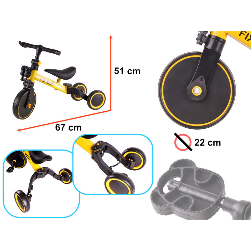 Bėgimo triratukas 3in1 su pedalais geltonas