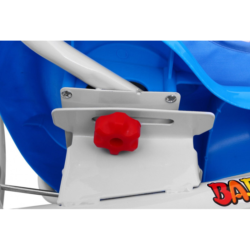 | - reguliuojamas, prie vairo prijungtas 3 pakopų strypas, kuriuo galima koreguoti vaiko manevrus, - saugūs ratai su spalvotais gaubteliais, - reguliuojamas apsaugos nuo saulės stogelis, - ant galvos esantys garsus įjungiantys mygtukai, - galinis krepšys (stovas) žaislams, - turėklas, apsaugantis vaiką nuo kritimo, - stabilus ir patvarus plieninis rėmas, - priekinis ratas su sankaba, - nuimama atrama kojoms, - reguliuojamas atstumas nuo sėdynės iki pedalų, - sėdynės užvalkalas, - antis suplasnoja sparnais paspaudus mygtuką ant galvos, - platūs ratai iš minkšto putplasčio, |