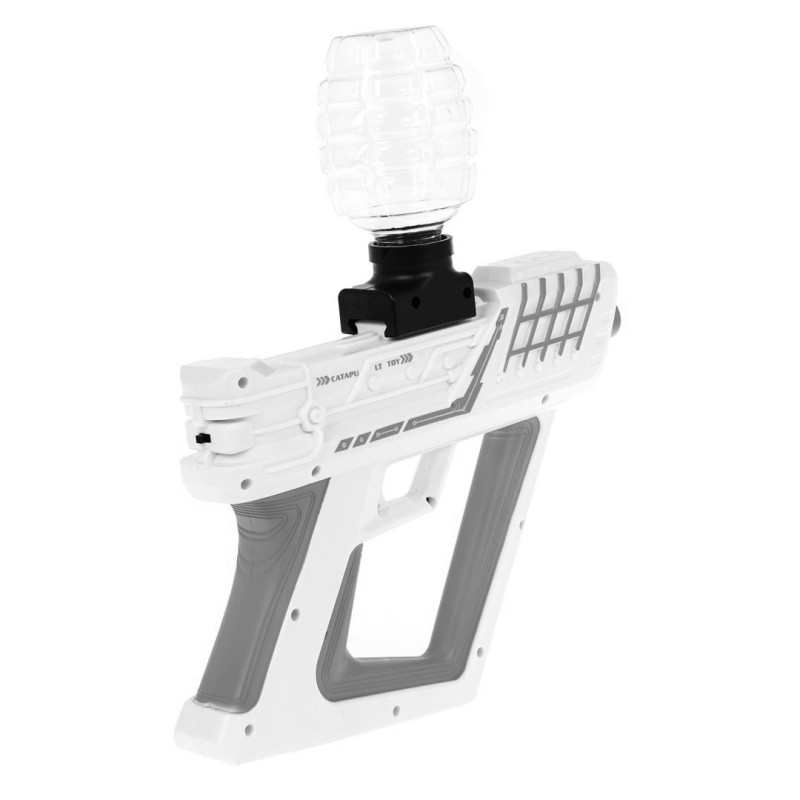 Automatinis gelio kamuoliukų pistoletas vaikams nuo 14 metų. Pistoletas pagamintas iš geriausios kokybės plastiko ir automatiškai šaudo gelio kamuoliukus. Naudoti pistoletą labai paprasta. Tereikia ant pistoleto uždėti statinę su iš anksto paruoštais rutuliukais ir paspausti gaiduką. Pistoletas nepertraukiamai šaudys kamuoliukus, kol ištekliai baigsis. Rinkinyje yra 4 maišeliai su paruoštais kamuoliukais. Kamuoliukai paruošiami užpilant juos vandeniu ir paliekant kelioms valandoms. Rinkinyje taip pat yra apsauginiai akiniai ir statinės gelio kamuoliukams.