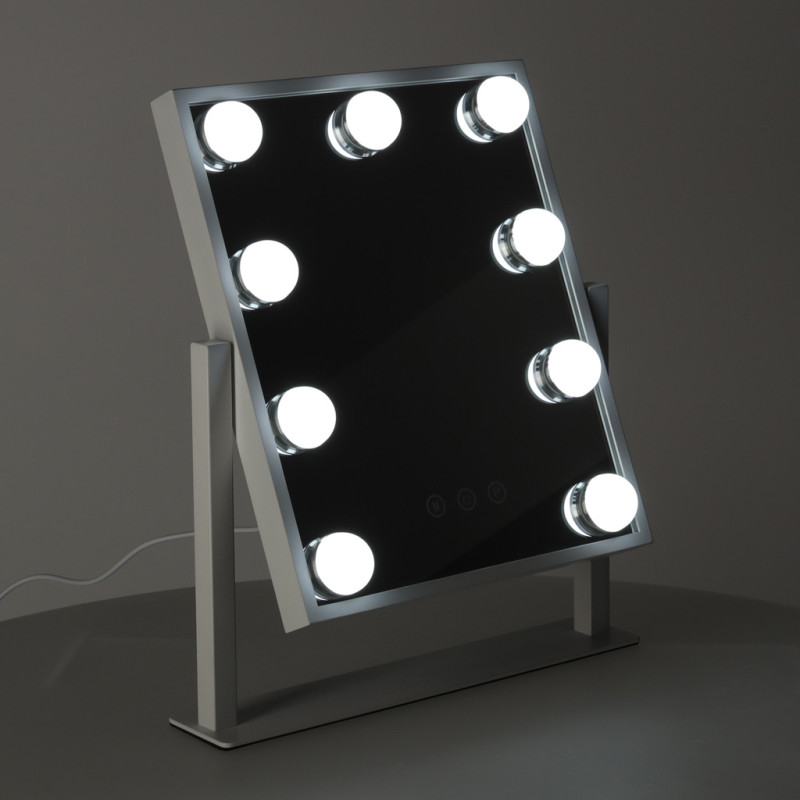 Dėl9 ryškių šviesos diodų galite lengvai pasidaryti bet kokį makiažą net ir prasto apšvietimo patalpose. Ant veidrodžio esančiais jutikliniais mygtukais galite keisti šviesos spalvą: šiltai baltą, natūralią baltą ir šaltą baltą, taip pat jos intensyvumą . Stabilus metalinis stovas su neslystančia medžiaga užtikrina, kad veidrodis neapvirstų, kai keičiate jo kampą darydamos makiažą. Minimalistinio dizaino ir baltos spalvos veidrodis busstilingas jūsų tualetinio staliuko ar vonios kambariopriedas, puikiai derantis prie bet kokio interjero.
