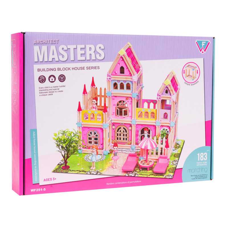 Spalvingų ir saugių kaladėlių rinkinys skirtas vaikams nuo 3 metų. Rinkinį sudaro 183 elementai, kuriuos surinkus sukuriamas namas su sodu ir poilsio zona. Rinkinyje taip pat yra 2 princesių figūrėlės.