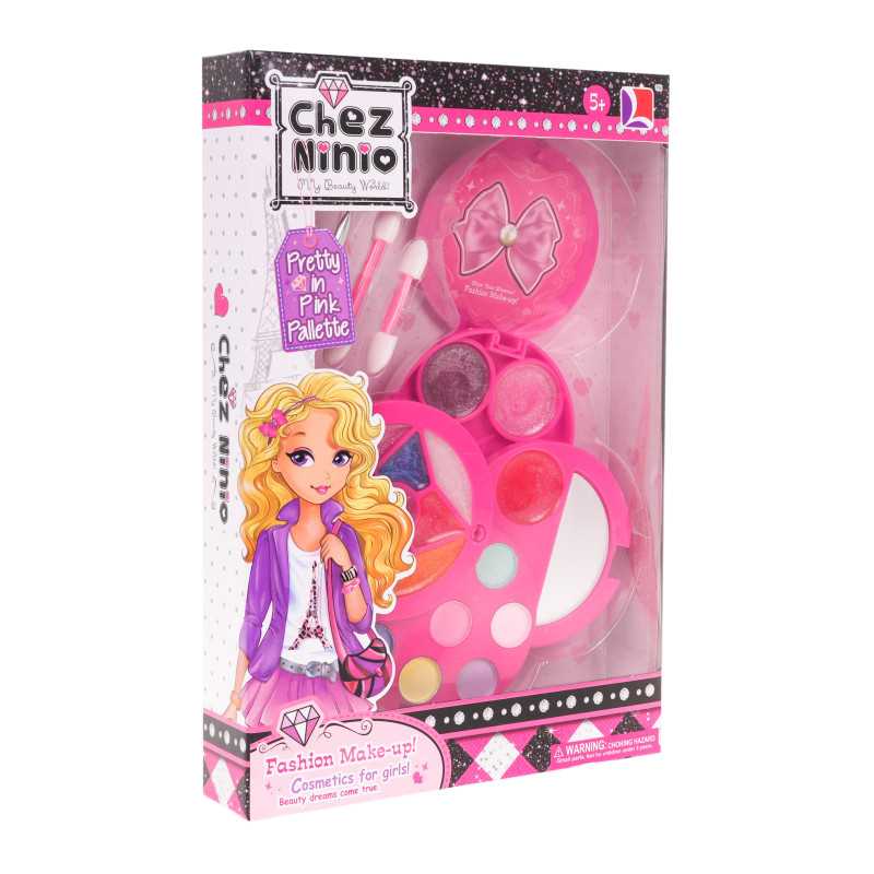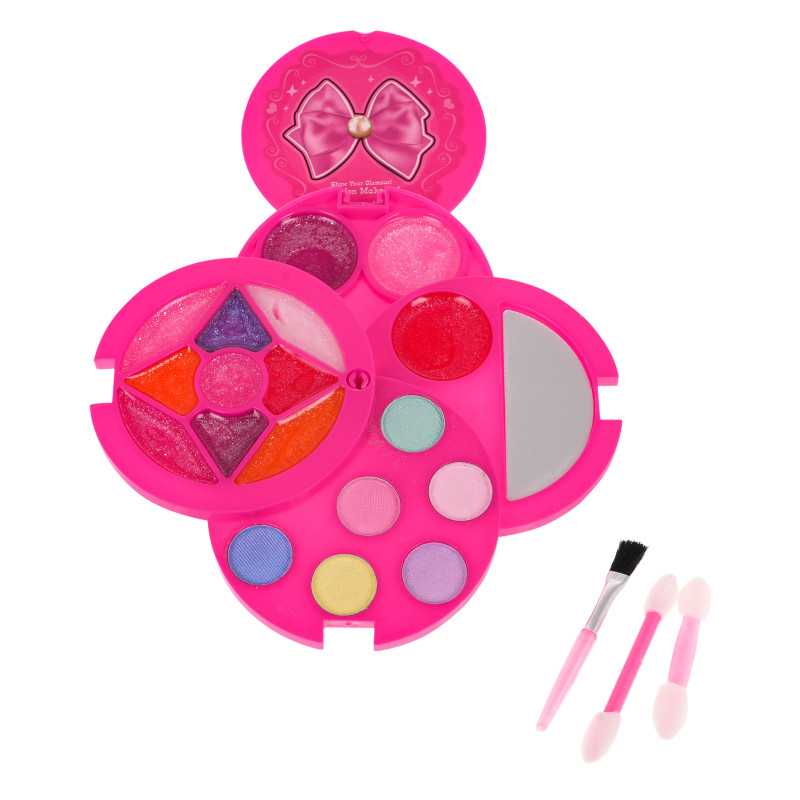 | Saugus makiažo rinkinys vaikams nuo 5 metų. Rinkinį sudaro atidaroma kosmetinė su akių šešėliais, lūpų blizgiu, veidrodėliu ir makiažo šepetėliu. |