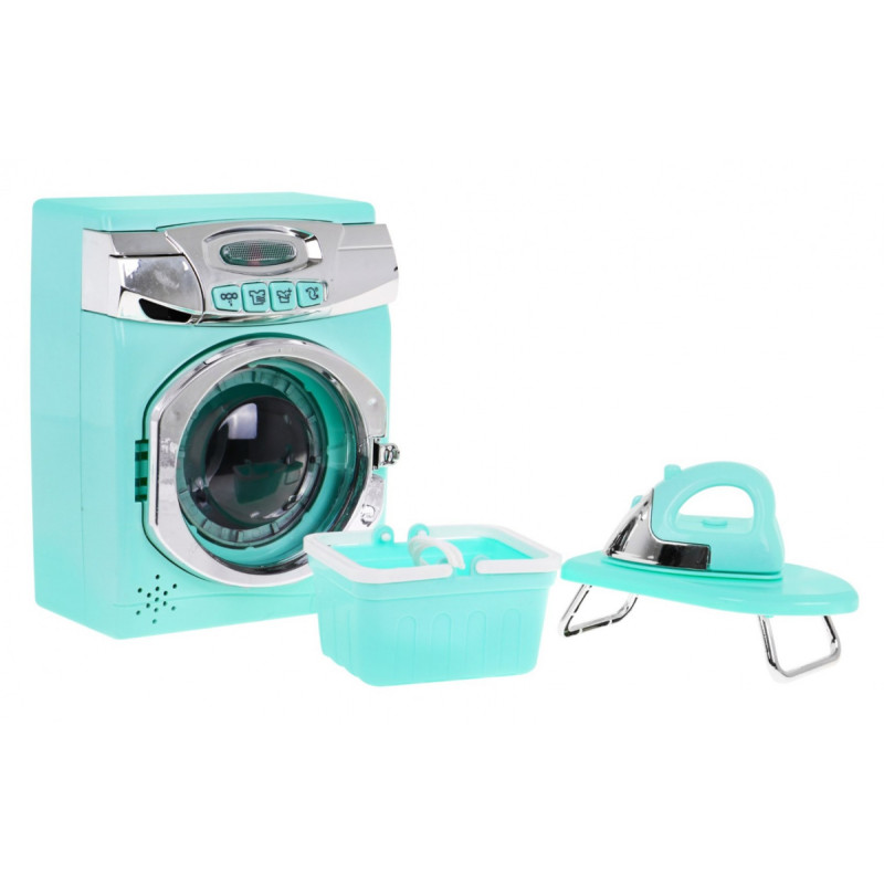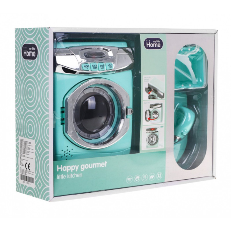 | Skalbimo mašinos, lyginimo lentos ir skalbinių krepšio rinkinys - tai pasiūlymas visiems vaikams, kurie mėgsta mėgdžioti tėvus atliekant kasdienius namų ruošos darbus.Skalbimo mašina maitinama AA-3 x 1, 5 V baterijomis (į komplektą neįeina).Ji turi garso ir šviesos efektus.Mygtukais pasirinkite skalbimo programas ir, priklausomai nuo programos, išgirsite skirtingus garsus, o skalbimo mašinos priekyje užsidegs šviesos diodas. Skalbimo programos: - pirmoji ir antroji programos skleidžia skalbimo garsus, būgnas sukasi, - trečioji - išpumpuojamo vandens garsas, - ketvirtoji - vandens pripildymo garsai, skalbyklės būgnas sukasi. Skalbimo mašina turi atvirą skalbimo priemonių skyrių ir atsidarantį būgną. | |