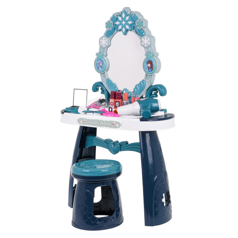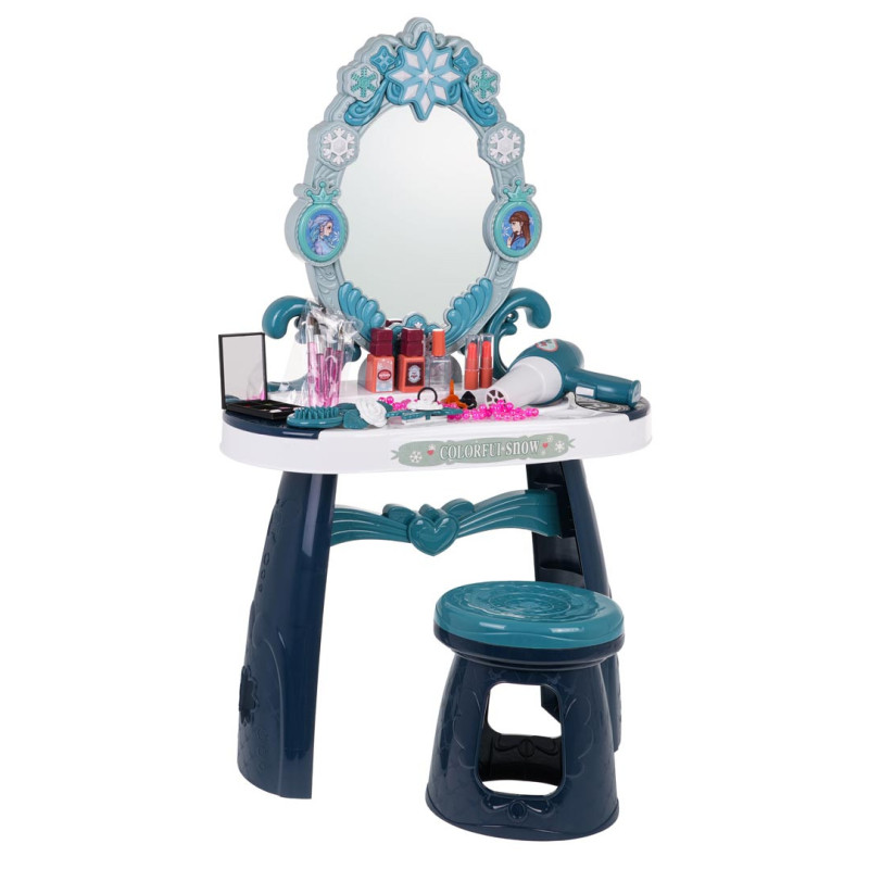Interaktyvus persirengimo staliukas su priedais ir taburete, skirtas vaikams nuo 3 metų. Rinkinys pagamintas iš geriausios kokybės ryškiaspalvio plastiko. Be gražaus tualetinio staliuko su stalviršiu ir dekoruotu veidrodžiu, turime ir patogią taburetę mažosioms gražuolėms. Rinkinyje yra plaukų džiovintuvas, taip pat gausus dažymui skirtų priedų rinkinys. Tualetinis staliukas maitinamas 3 x AA 1, 5 V baterijomis (į komplektą neįeina), džiovintuvas - 1 x AA 1, 5 V baterijomis (į komplektą neįeina).